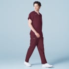 医療現場でも安全に着用できるよう開発された、抗ウイルス加工スクラブです。ゆとりを持たせつつもルーズにならない、すっきりとしたシルエットが特徴。シンプルなデザインだからこそ形の美しさが際立ちます。また、動きやすさを考え抜かれた「Mizuno Dynamotion Fit」のウェア構造が採用されているのもポイント。股下部にマチをとり、縦横の両方にストレッチ性を持たせた設計で、足さばきを妨げず軽快に。屈伸や開脚といった大きな動きにもストレスを感じさせません。