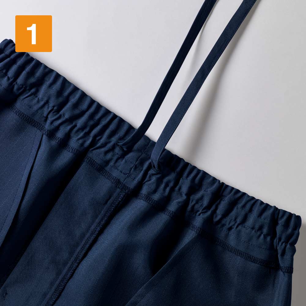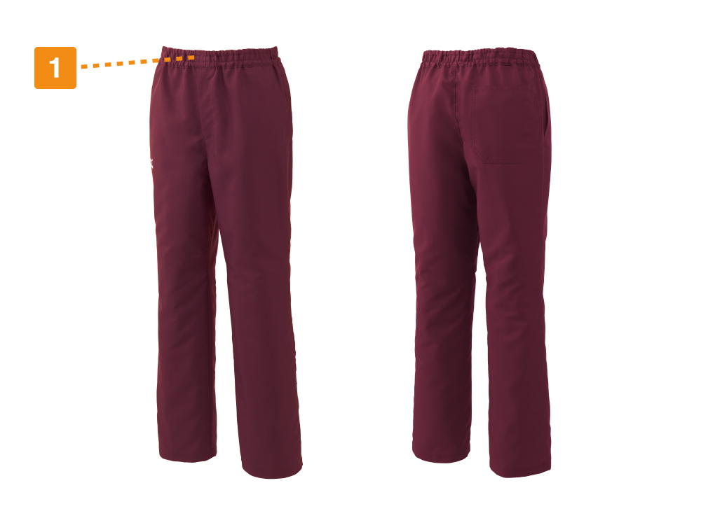 医療現場での毎日のお仕事を、安全かつ快適にアシストしてくれるウェアです。ウエスト部分は2段のウエストゴムを採用し、ウエストサイズに優しくフィット。また、ひもで調整することも可能なので、お好みの着用感でお過ごしいただけます。さらに、医療現場に求められる衛生面でも配慮がなされており、高い制菌加工性能の基準をクリアしたSEKマークを取得しています。衛生的にデリケートな医療現場でも、安全に着用いただけるパンツです。