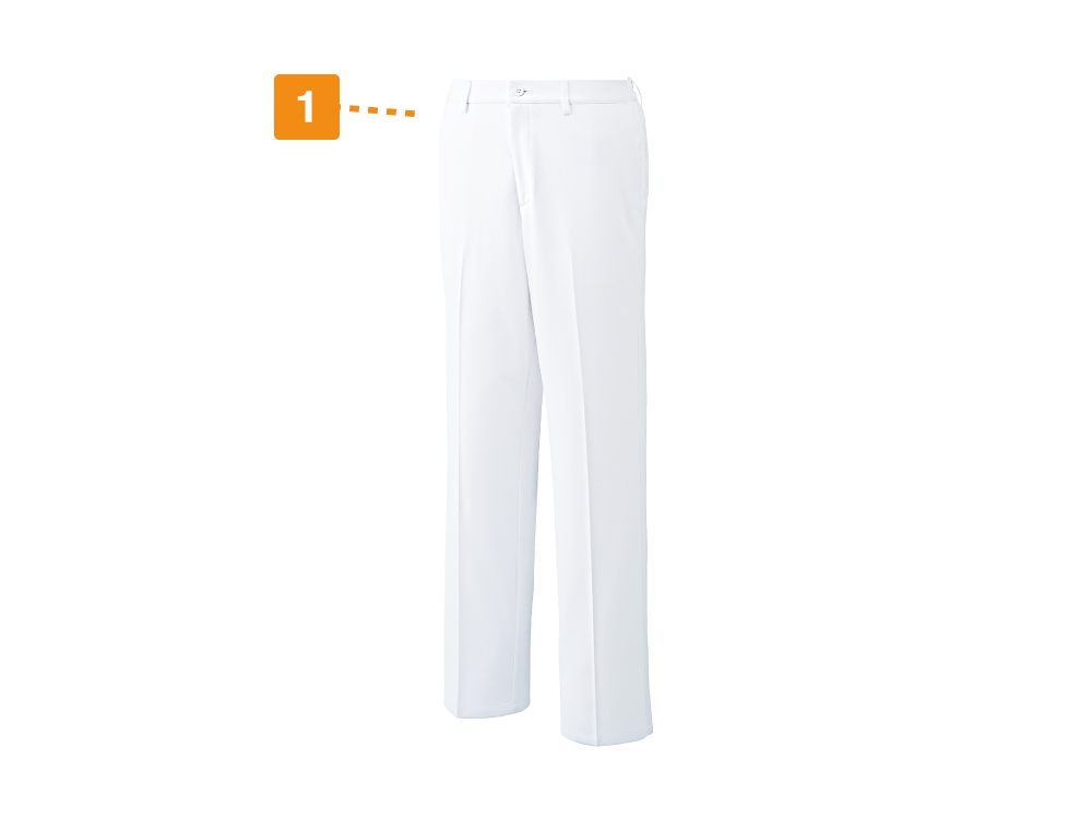 タックをなくしたスマートなシルエットが人気のパンツです。すっきりとしたシルエットながら、生地の持つストレッチ性能や独自の生地組み立てにより、動きやすさをしっかりと備えているのもポイント。ウエスト両脇はゴムになっているので、心地よいフィット感でお過ごしいただけます。医療現場に求められる衛生面でも配慮がなされており、高い制菌加工性能の基準をクリアしたSEKマークを取得しています。衛生的にデリケートな現場でも、安全に着用いただけるパンツです。