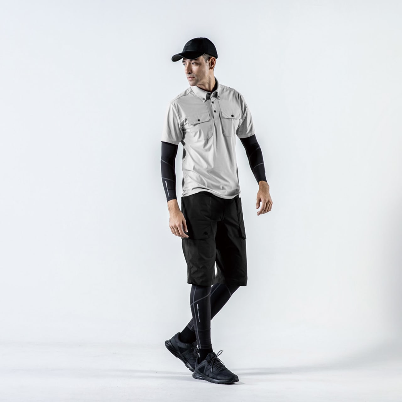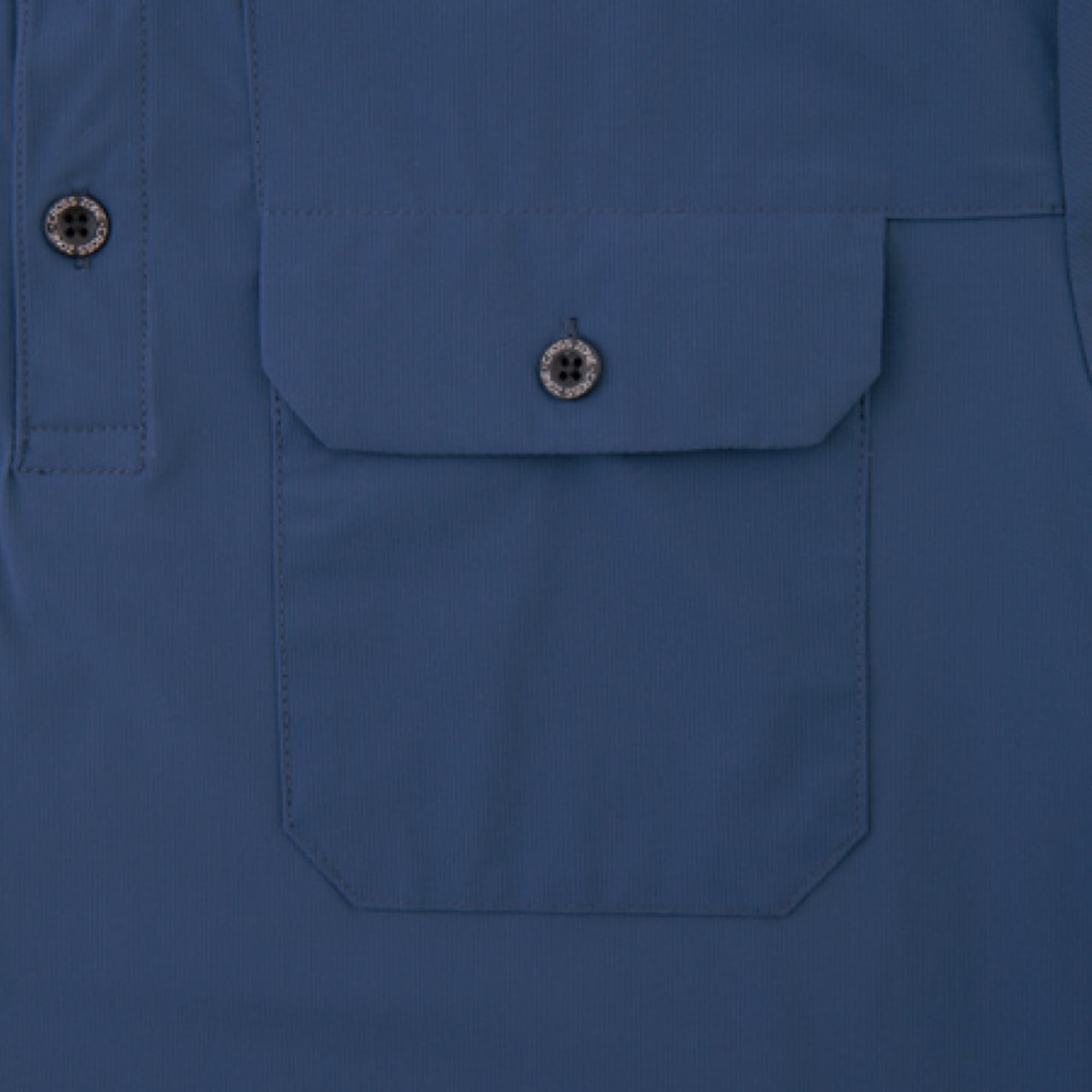 使い勝手と着心地を考え抜かれたウェアです。本体生地に使用されているのは、吸湿性と放湿性をともに備えた、接触冷感性ナイロントリコット。肌に心地良いひやりとした感触で、夏の暑い季節にも快適な着用感を実現しています。さらに、生地は気になる汗のニオイを抑える消臭機能付きで、清潔感のある印象にしてくれるのもポイントです。収納面では、両胸ポケットがフラップポケットとなっているため、物の落下を防いで貴重品も安全に携帯いただけます。