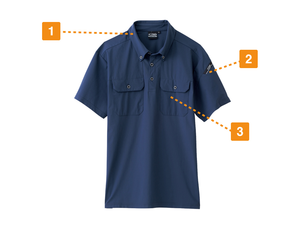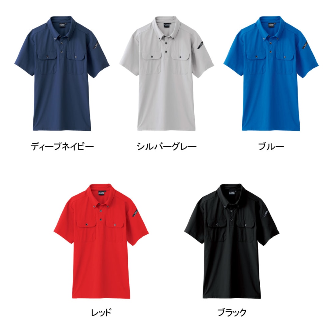 ベーシックなデザインに、こだわりの機能を詰め込んだ快適なポロシャツ。生地は優れた速乾性と吸汗性を備えることで、たくさん汗をかくお仕事でもすぐにからりとした着用感が戻ります。また、両胸のポケットに加え、左袖にペン差しを備えており、半袖ながら収納力も優れた一着。また、襟周りはボタンダウン仕様になっており、ポロシャツながらかっちりとした印象に。作業用ウェアとしてはもちろん、人と接することの多い方にもおすすめです。