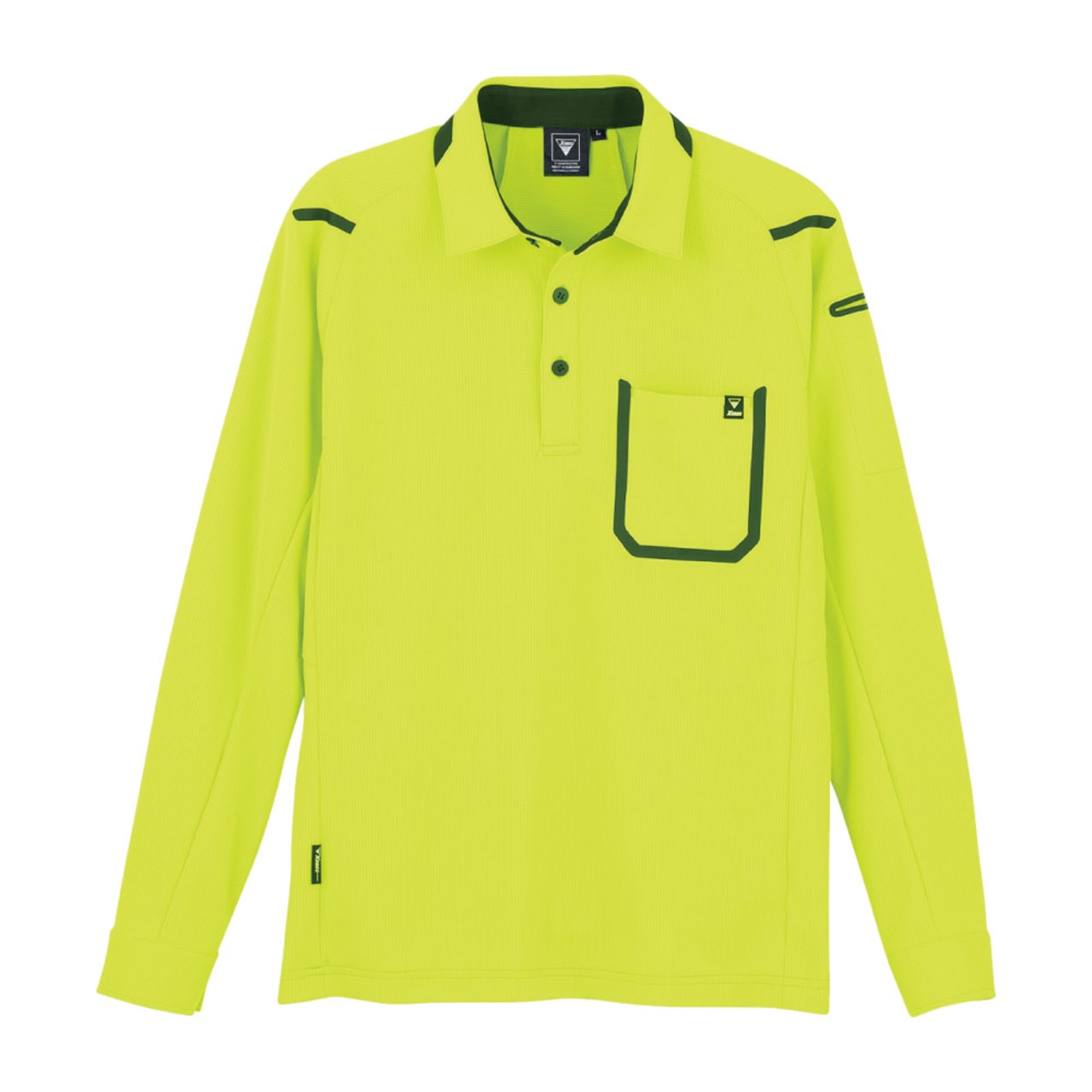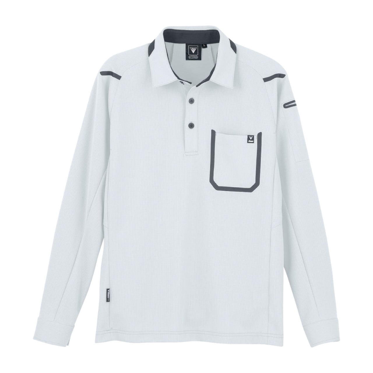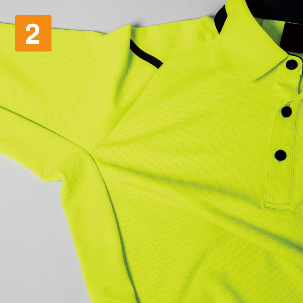 着る方をスタイリッシュに見せてくれる、洗練されたデザインが人気の長袖ポロシャツ。かっこいいだけでなく、ジーベック独自のXEカッティング設計でより動きやすい一着になっています。また、袖口がカフスボタン仕様になっているので、手元にもきちんと感をプラス。腕まくりがしやすいのもポイントです。カラーはモノトーンをはじめ、ビビッドで個性的なカラーまで6色をラインナップ。視認性の高いビビッドカラーは配送業にもおすすめです。