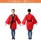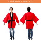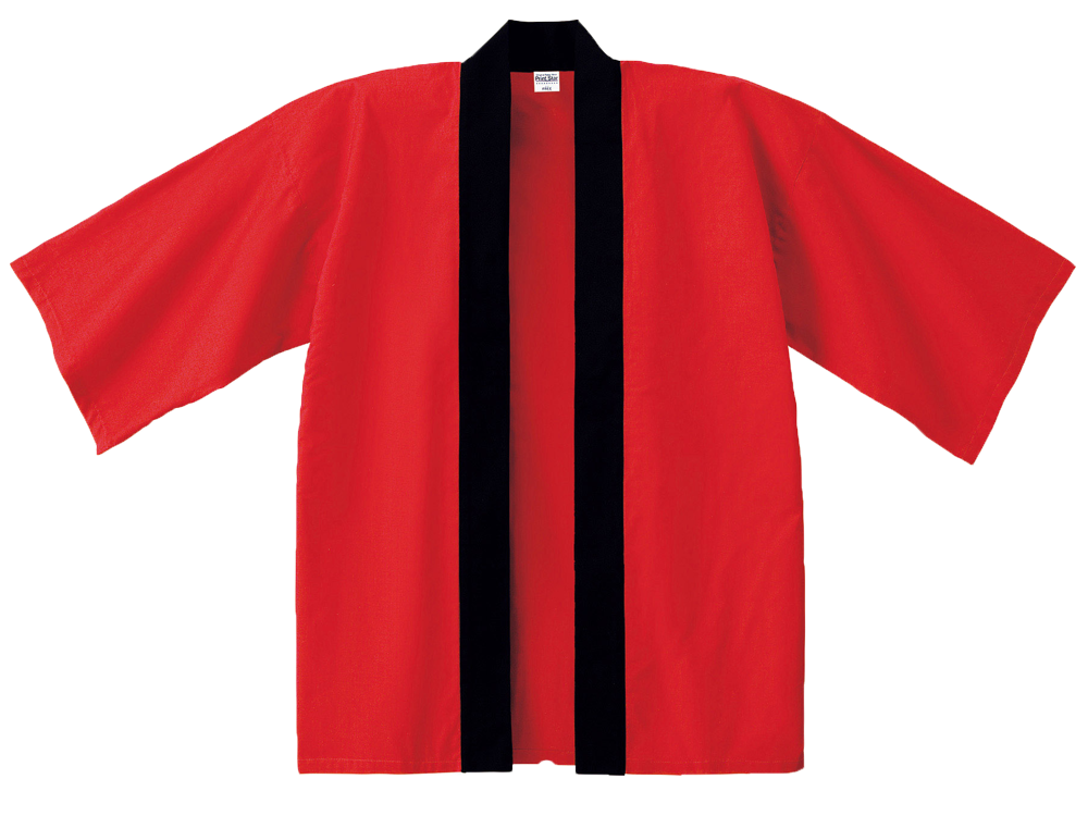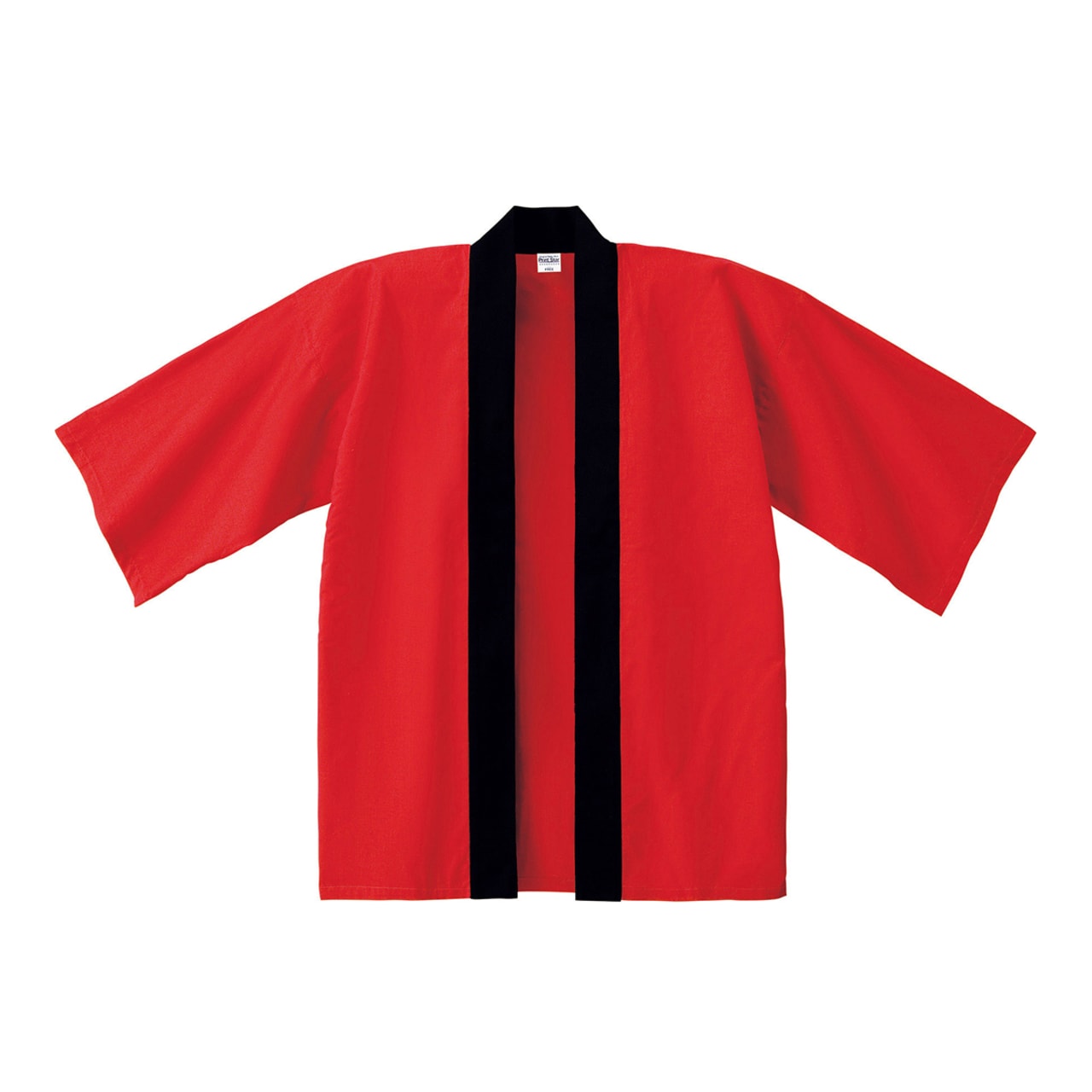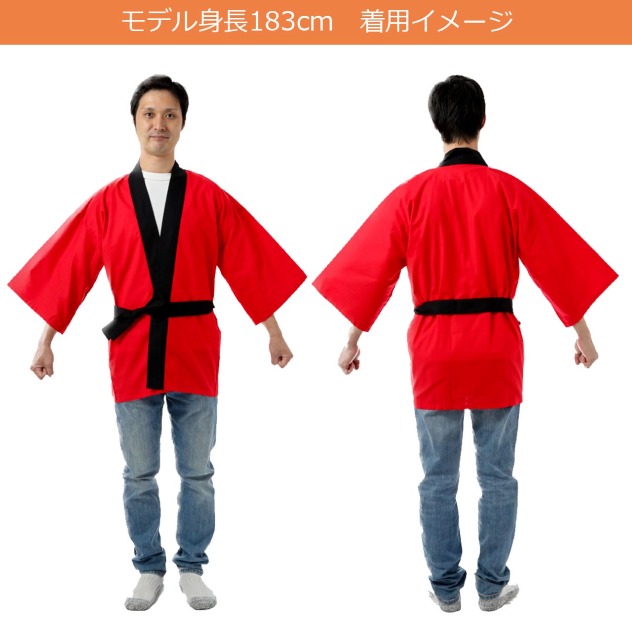 程良い厚みのコットン100%素材の生地を使用したはっぴです。※レッドとイエローのみ黒帯がセットになっています。