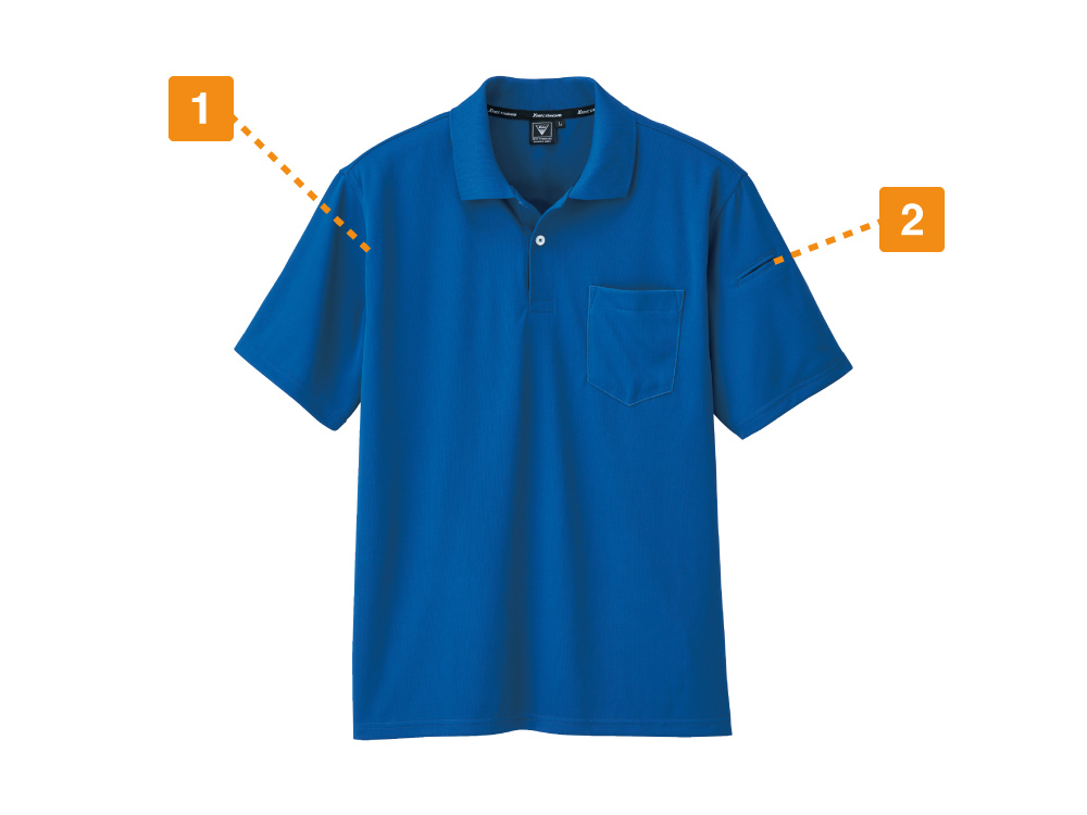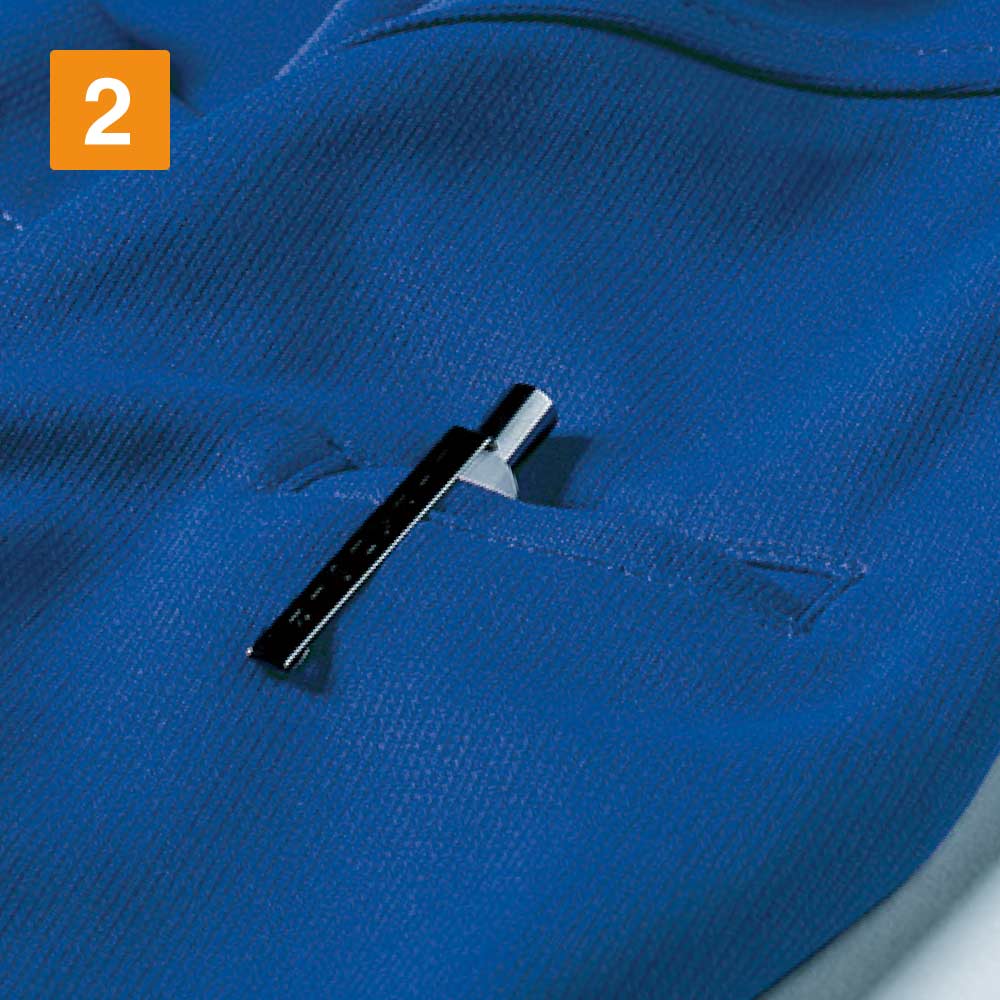 シンプルな中にこだわりの機能が詰まった一着です。本体にはインナーや肌が透けにくい生地を使用しているので、男女問わず、視線を気にせず快適にお過ごしいただけます。また、胸ポケットに加え、左袖にはさりげなくペン差しが設けられているので、メモなどの際もスマートな立ち振る舞いを可能にしてくれます。脇裏には気になるニオイをカットする消臭テープ付き。作業に伴う不快なニオイを抑え、常に心地よく着用いただける一着になっています。