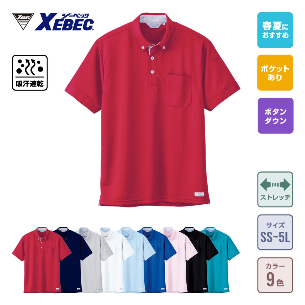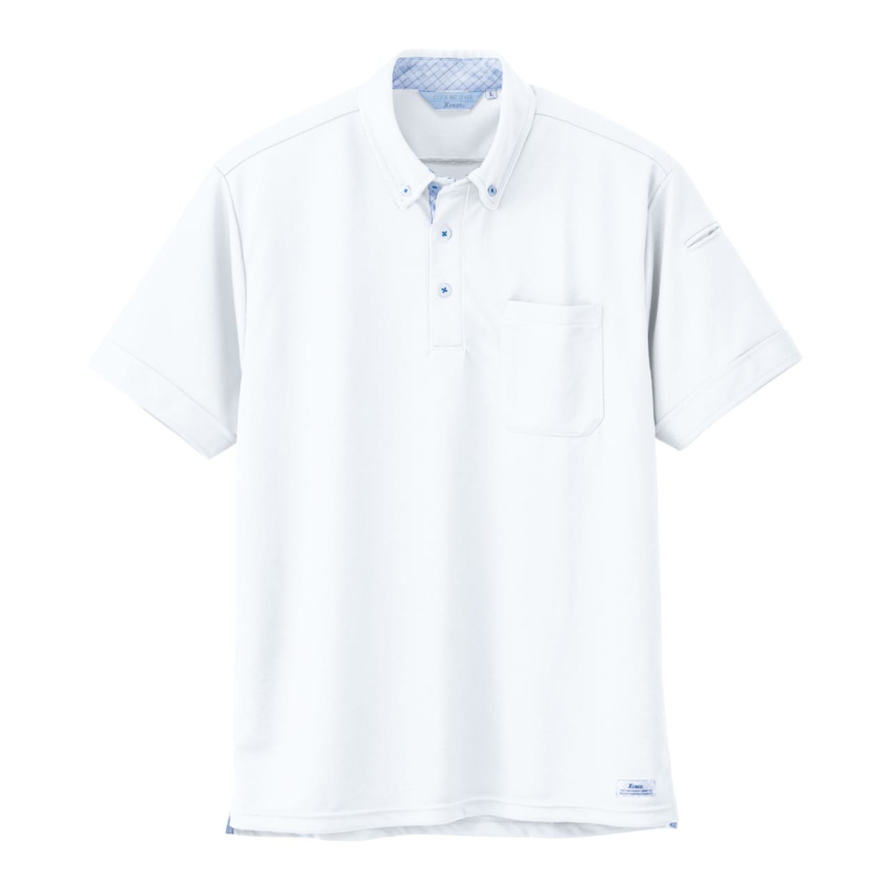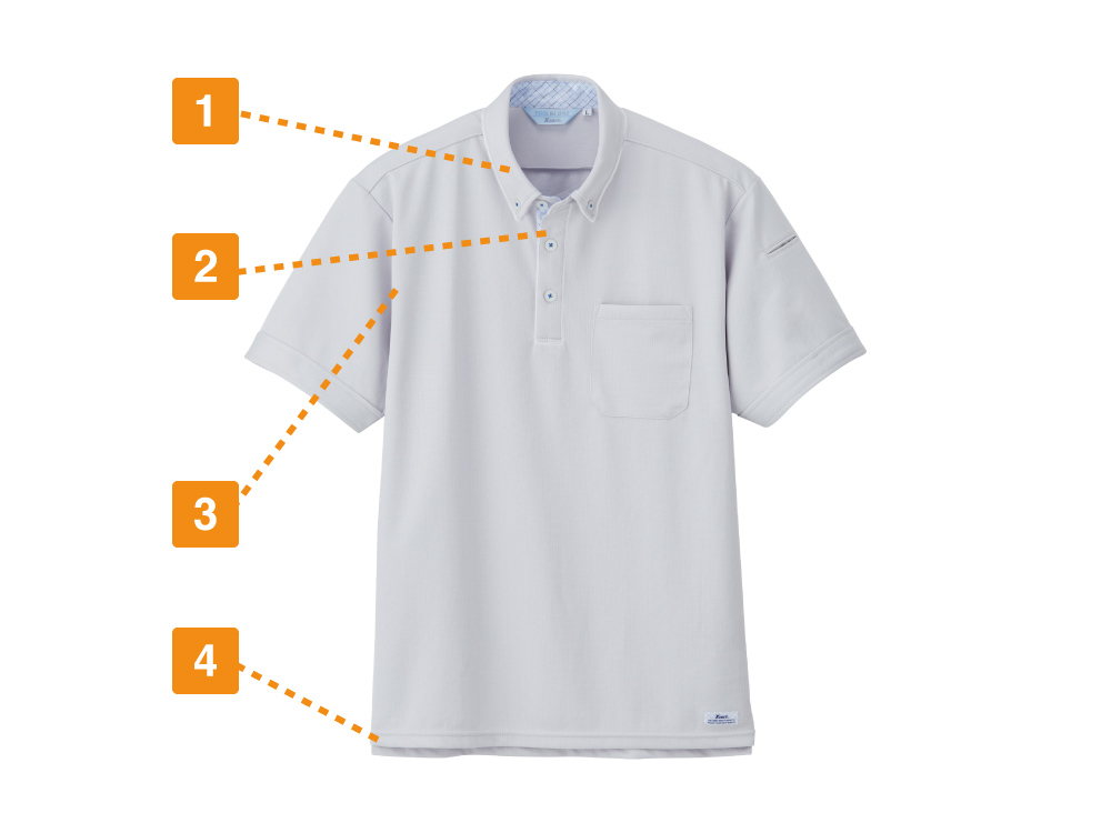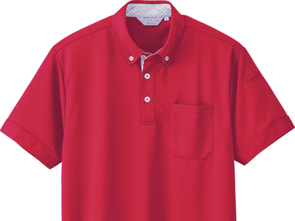 シンプルながらデザインにこだわりが光る一着です。襟まわりの生地切り替えが、さりげなくおしゃれな印象に。また、高い通気性、速乾性、吸汗性と三拍子揃った生地性能を備え、一度着るとやみつきになる心地よさが持ち味。汗をかいても快適な着用感が持続するので、体を動かすお仕事や外回りの多いお仕事にもおすすめです。襟元は清潔な印象を与えてくれるボタンダウンデザイン。ラフな雰囲気にならず、ビジネスシーンにもなじむウェアになっています。