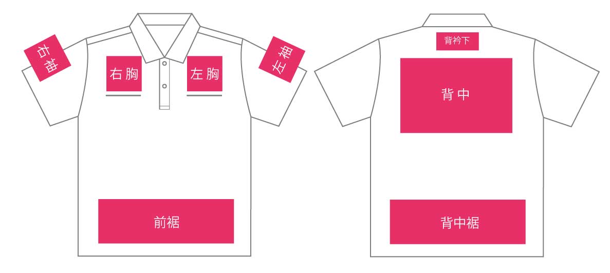 ピンク部分は、刺しゅう、プリントどちらもOK