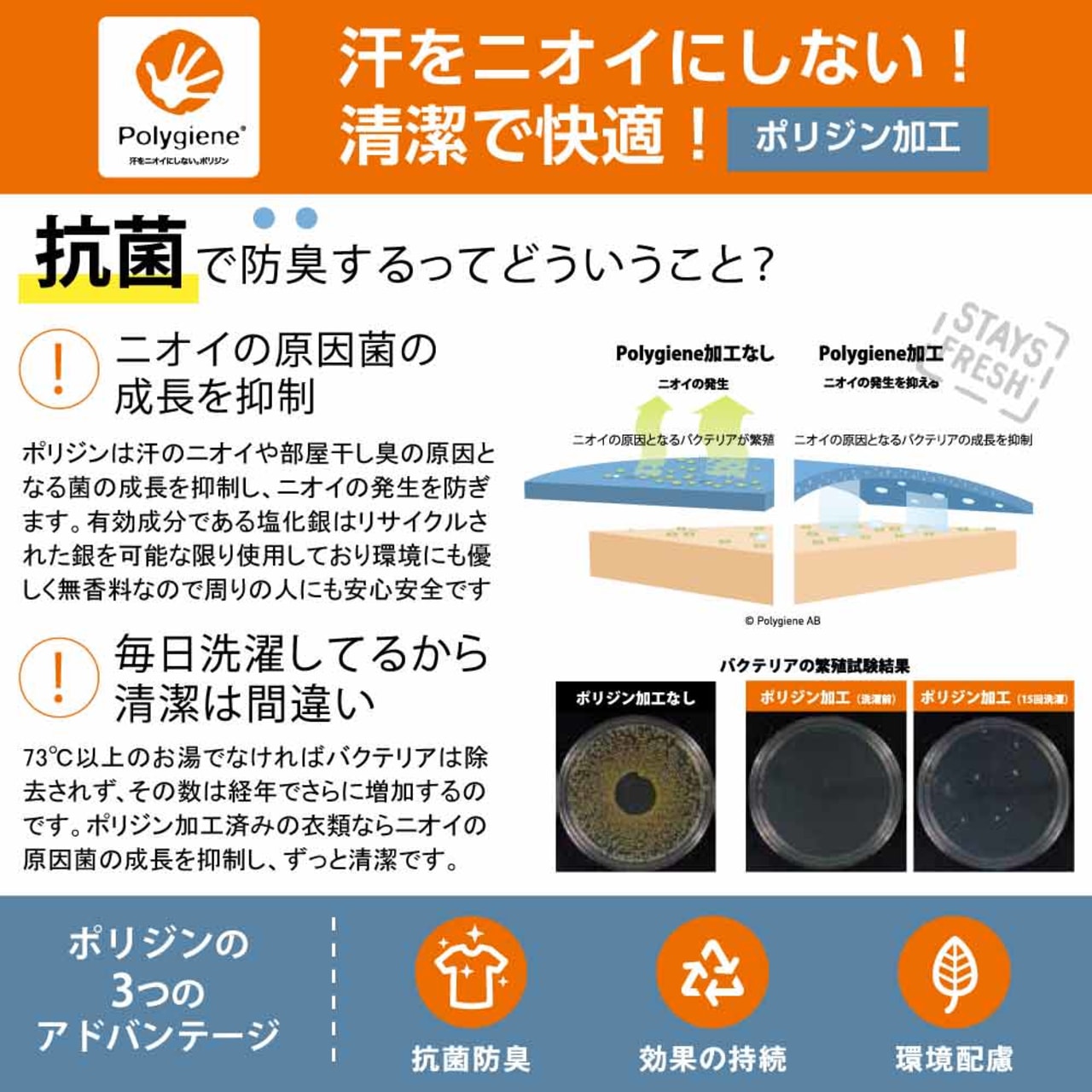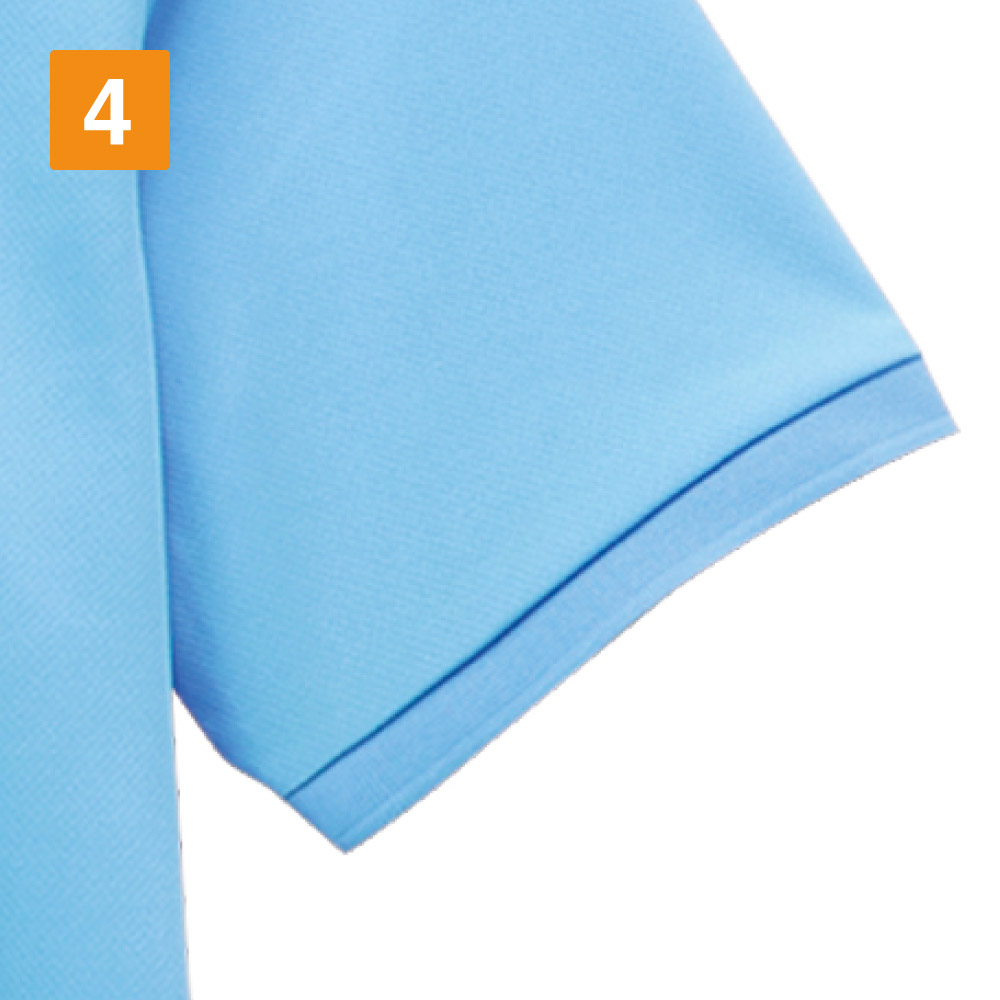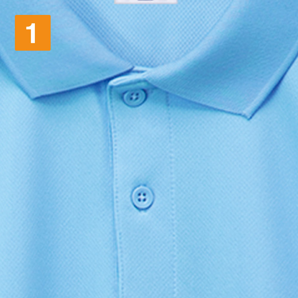 シンプルだからこそ、刺しゅうやプリントでオリジナルなアイテムを制作するのにおすすめのポロシャツ。モノトーンにブルー系とレッド系のカラーをプラスした、10色の豊富なカラーラインナップも魅力です。ボタンと生地カラーを同色で揃えるなど、さりげないこだわりが光ります。また、吸水性と速乾性を備えたドライ生地が、快適な着心地をキープ。汗をかいてもさらりとした着用感が持続します。生地には有害な紫外線をカットする機能も施されており、外部での作業やイベント時の着用にもおすすめです。