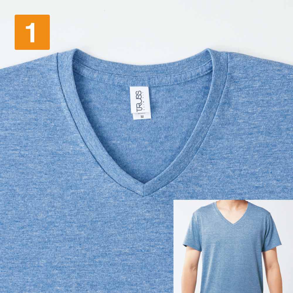 シャープな印象のVネックデザインで、あか抜けたおしゃれさを楽しめるTシャツです。カラーはモノトーンからニュアンスカラーまで、バリエーション豊富な10色をラインナップ。Tシャツでは珍しい淡めのカラーは、大人っぽく落ち着いた印象を与えてくれます。シンプルなデザインなので、刺しゅうやプリントといったオリジナル加工を施すベースとしてもおすすめ。Vネックだからこそ出せる抜け感のあるオリジナルウェアで、個性あふれるユニフォーム制作が可能です。