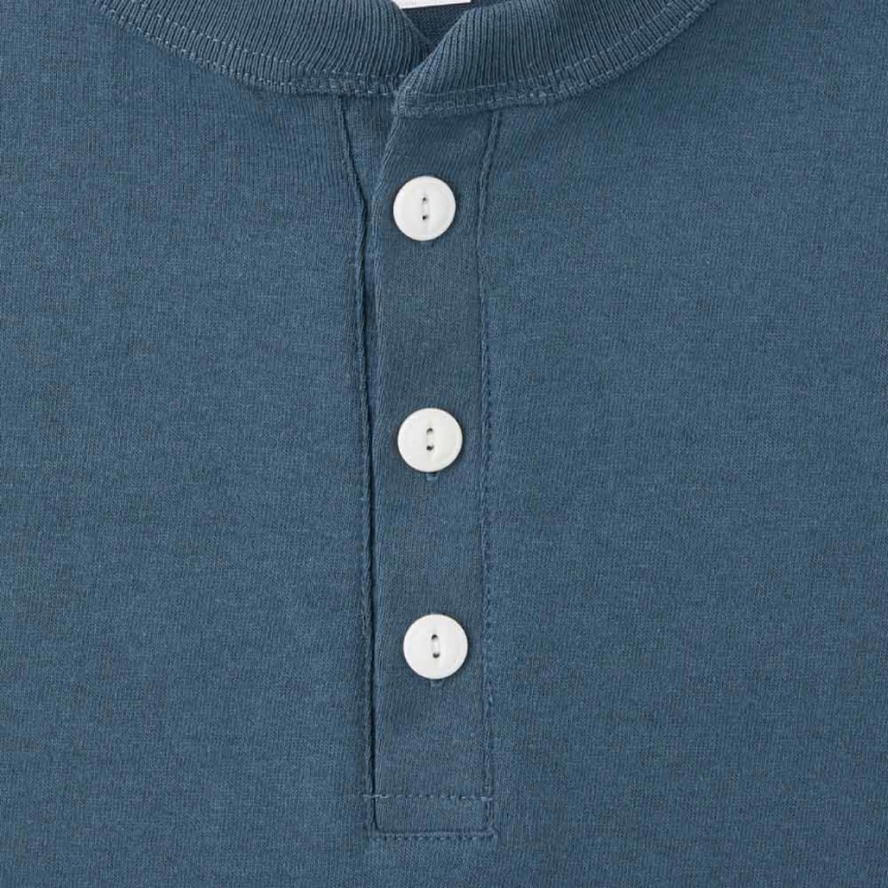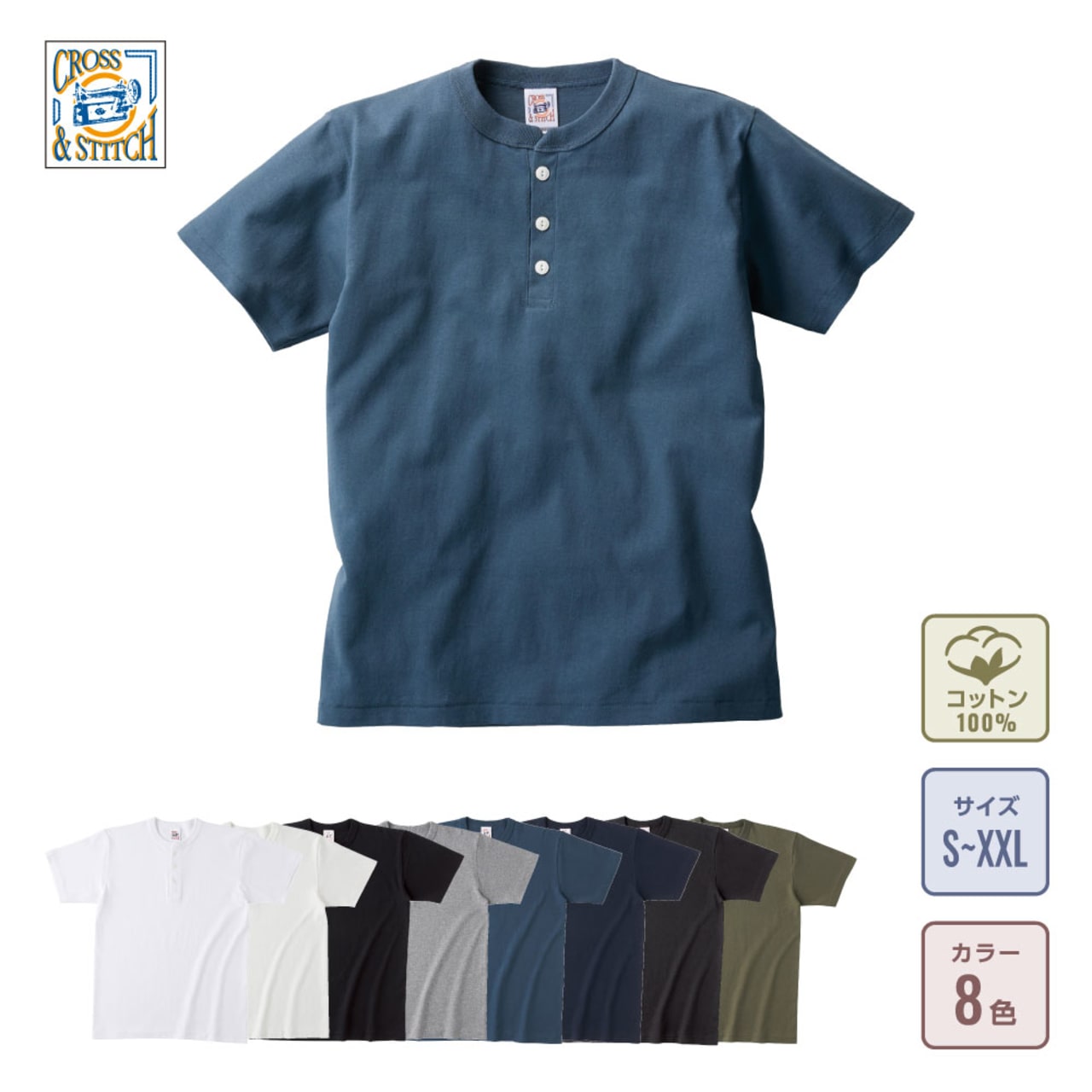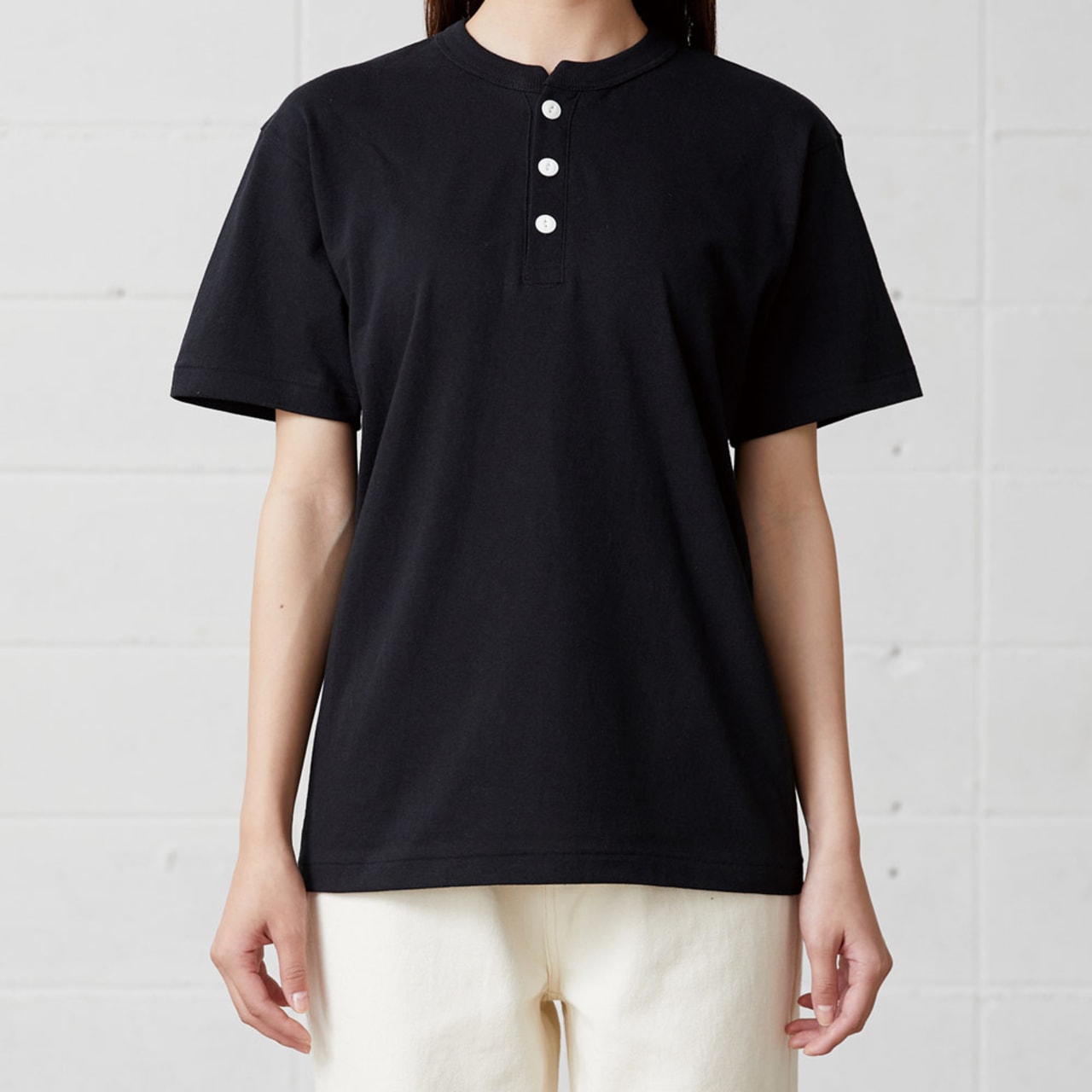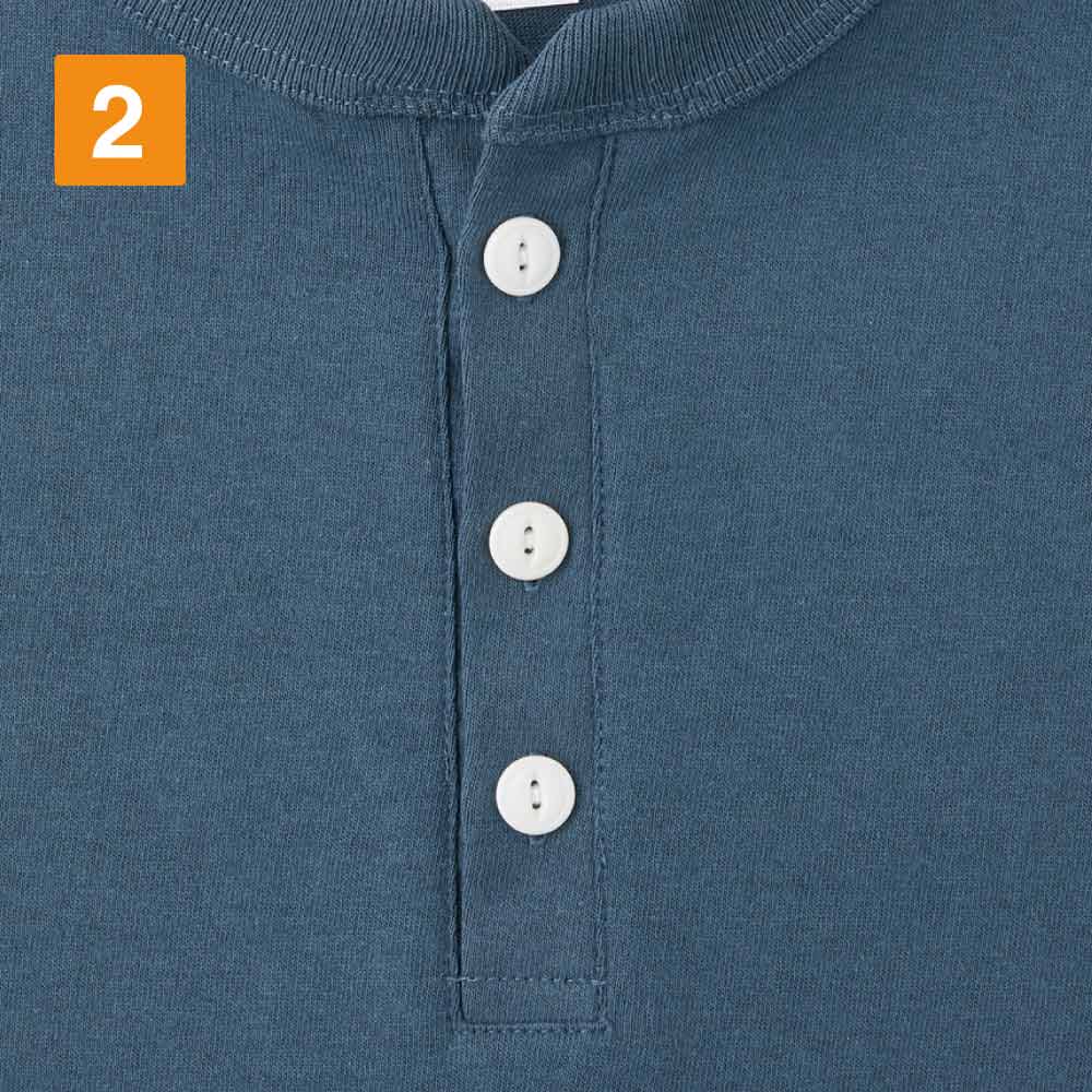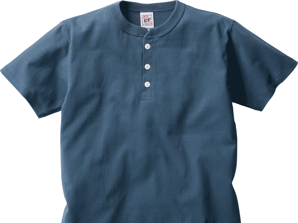 こだわりを感じるデザインで人気の高い、ヘンリーネックTシャツ。首周りはおしゃれでこなれた印象のヘンリーネックデザイン。他とは違う個性的なユニフォームとしても人気のウェアです。2つ穴のネコ目ボタンを使用した前立てで、着こなしのアレンジも楽しめます。襟は太めの2.5cm幅でさりげなく個性をプラス。二本針縫製が施され、伸びにくくより丈夫になっているのもポイント。オリジナルプリントや刺しゅうとの相性もよく、他にはないかっこよさあふれるオリジナルウェアが制作可能です。