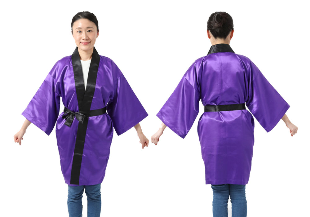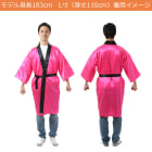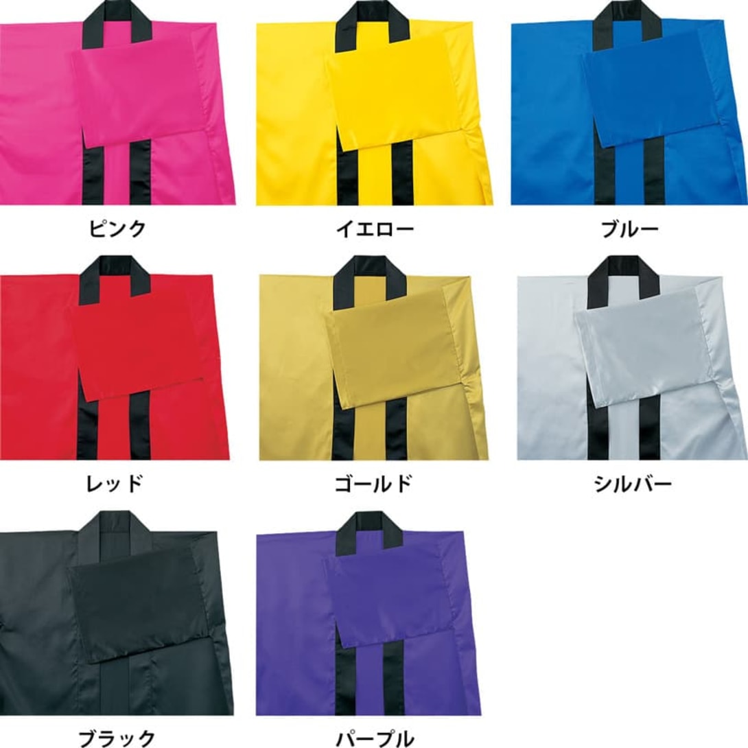 キラキラと光沢感あるポリエステルサテン生地を使用したロングはっぴ。とっても軽い生地なので踊り用等に大人気です。サラサラとした手触りでシワになりにくいのも特徴です。