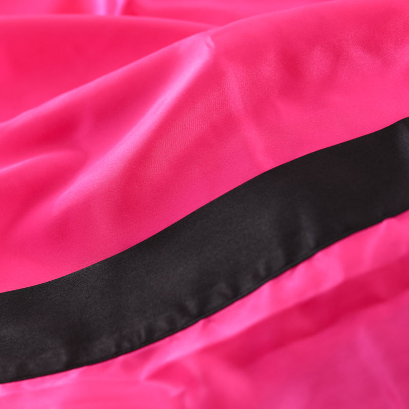 上質なポリエステルサテン生地を使用。光沢がありシワになりにくいのが特徴です。また、サテン生地の帯がセットになっています。