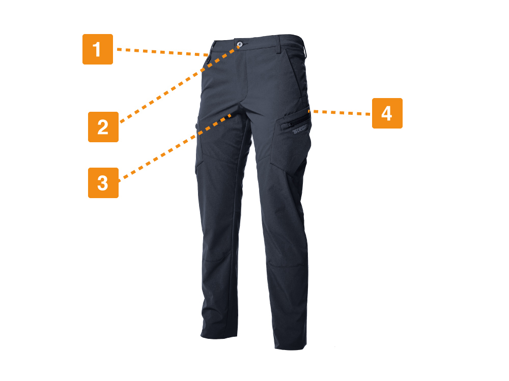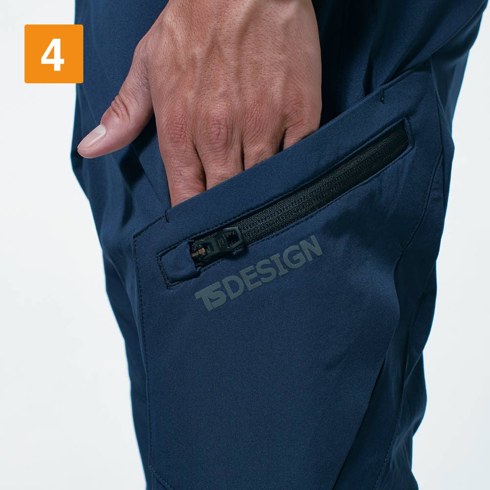 優れたデザインだけでなく、抜群の作業性でも選ばれているカーゴパンツ。ポイントは超高機能生地であるTS 4Dストレッチが使用されていること。TS 4Dストレッチは、ストレッチ糸を縦横の両方に使用することで高いストレッチ性を持たせた素材。方向に関係なく自在に伸縮し、かつてない動きやすさを実現しています。さらに、形態安定性や特殊加工マーバスLによる帯電防止機能・吸汗性・速乾性・汚れが落ちやすくなるSR加工など、数多くの機能を備え、毎日の着用を支えてくれる一着です。