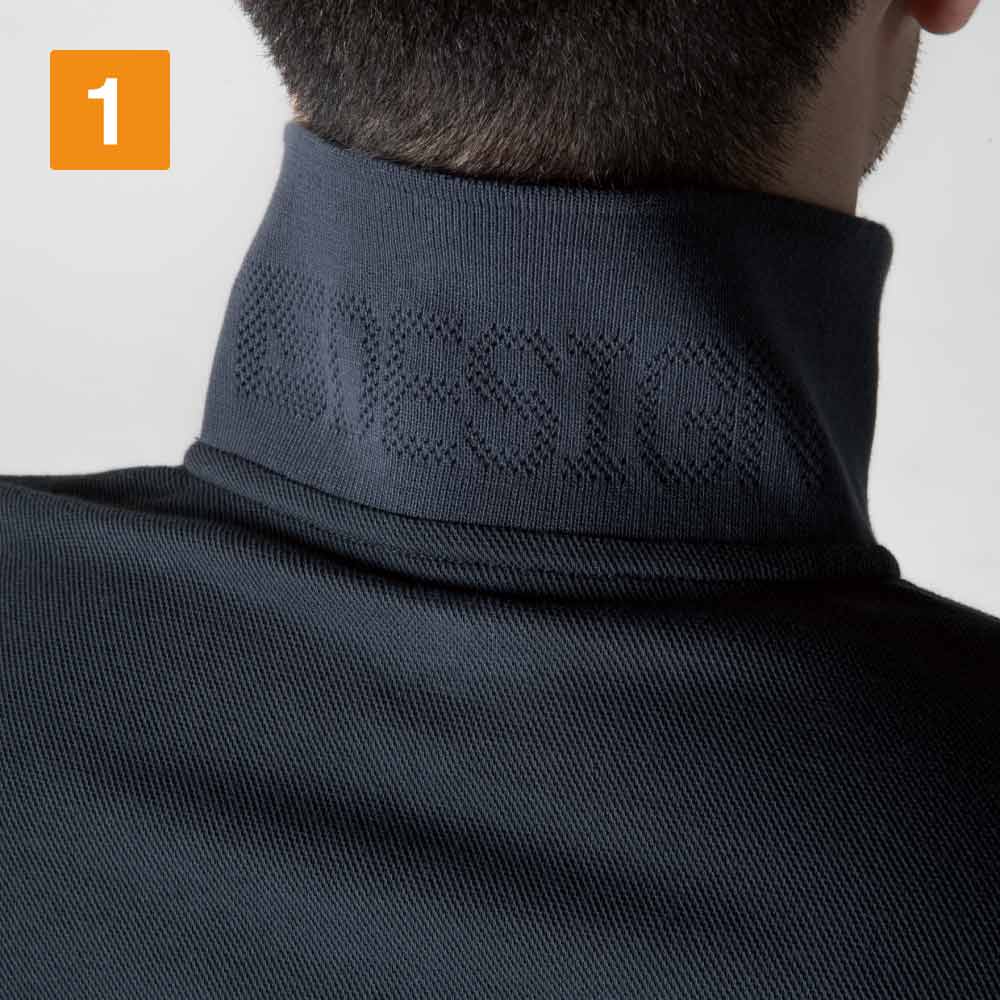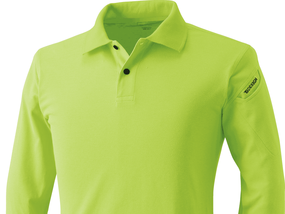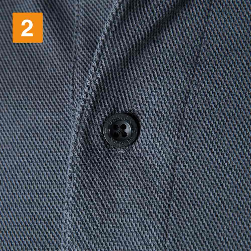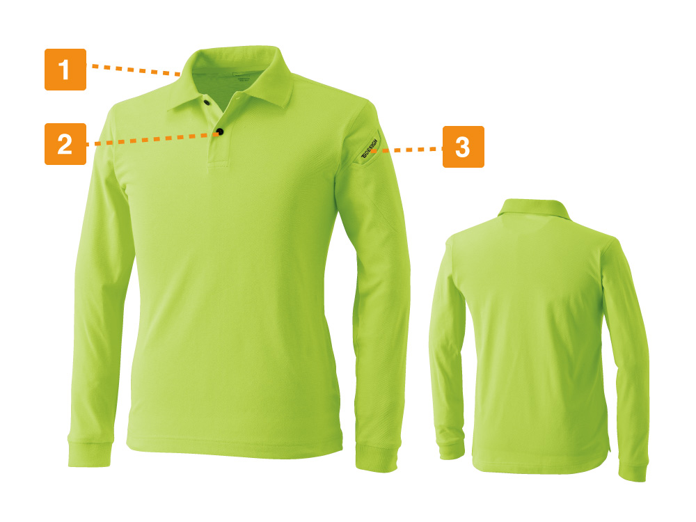 スタイリッシュでありながら、性別や年齢問わずなじむデザインが人気のウェア。メイン機能であるベンチレーションメッシュが、デザイン上のアクセントにもなった一着です。本体生地に使用されているドライ鹿の子は、その名の通りさらりとした肌ざわりが特長。生地の持つ吸汗性や通気性で、作業時に汗をかいてもベタつきにくく、快適な着用感をキープしてくれます。体をヘビーに動かすお仕事でも快適に着用いただけます。また、襟部分にはリブジャガードメッシュがあしらわれることで、首周りも常に涼やかに!