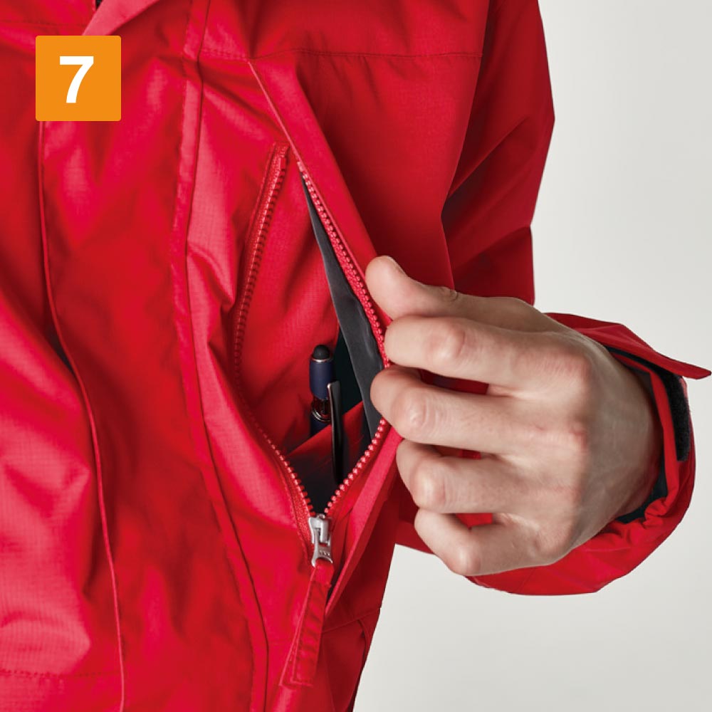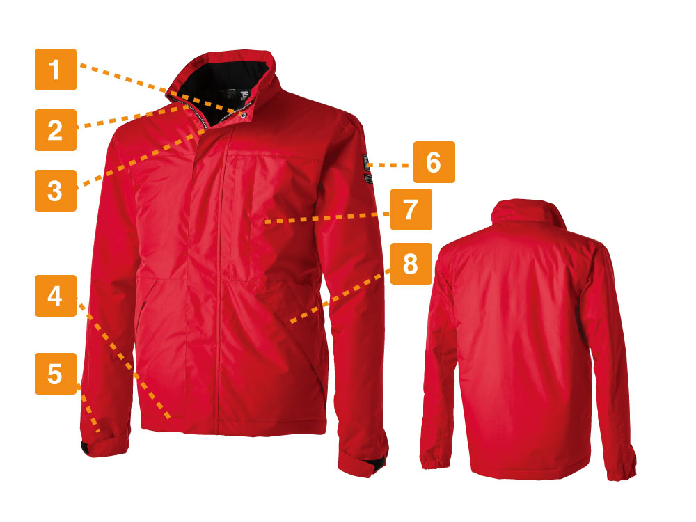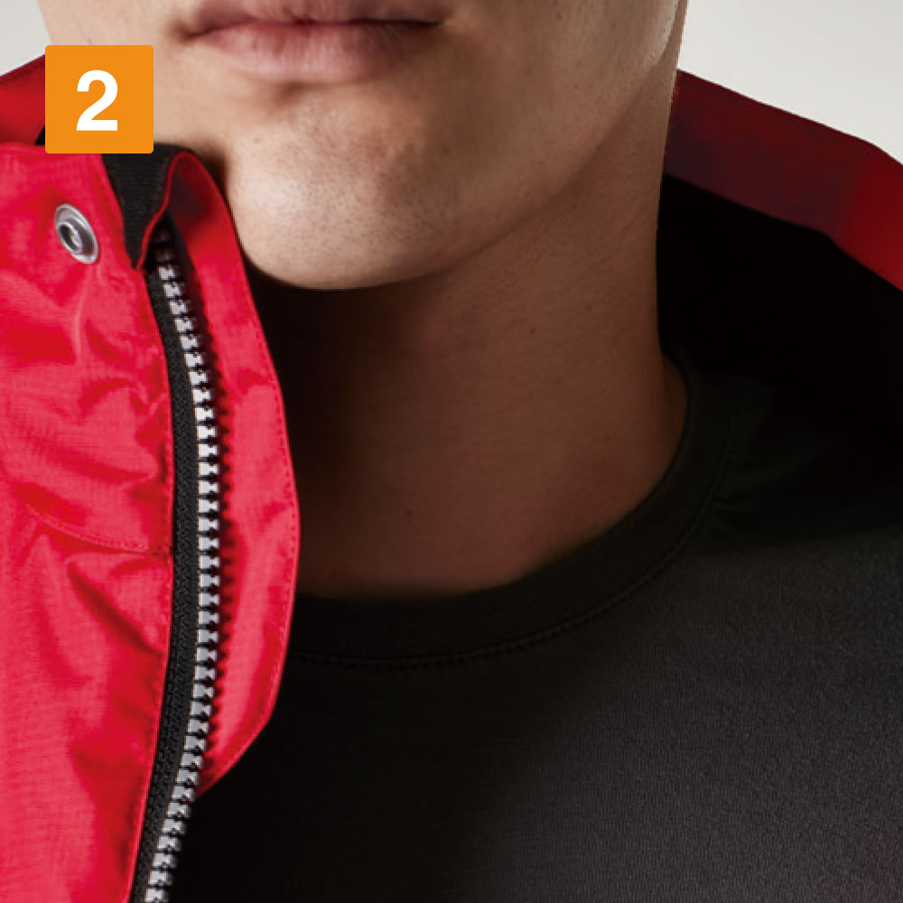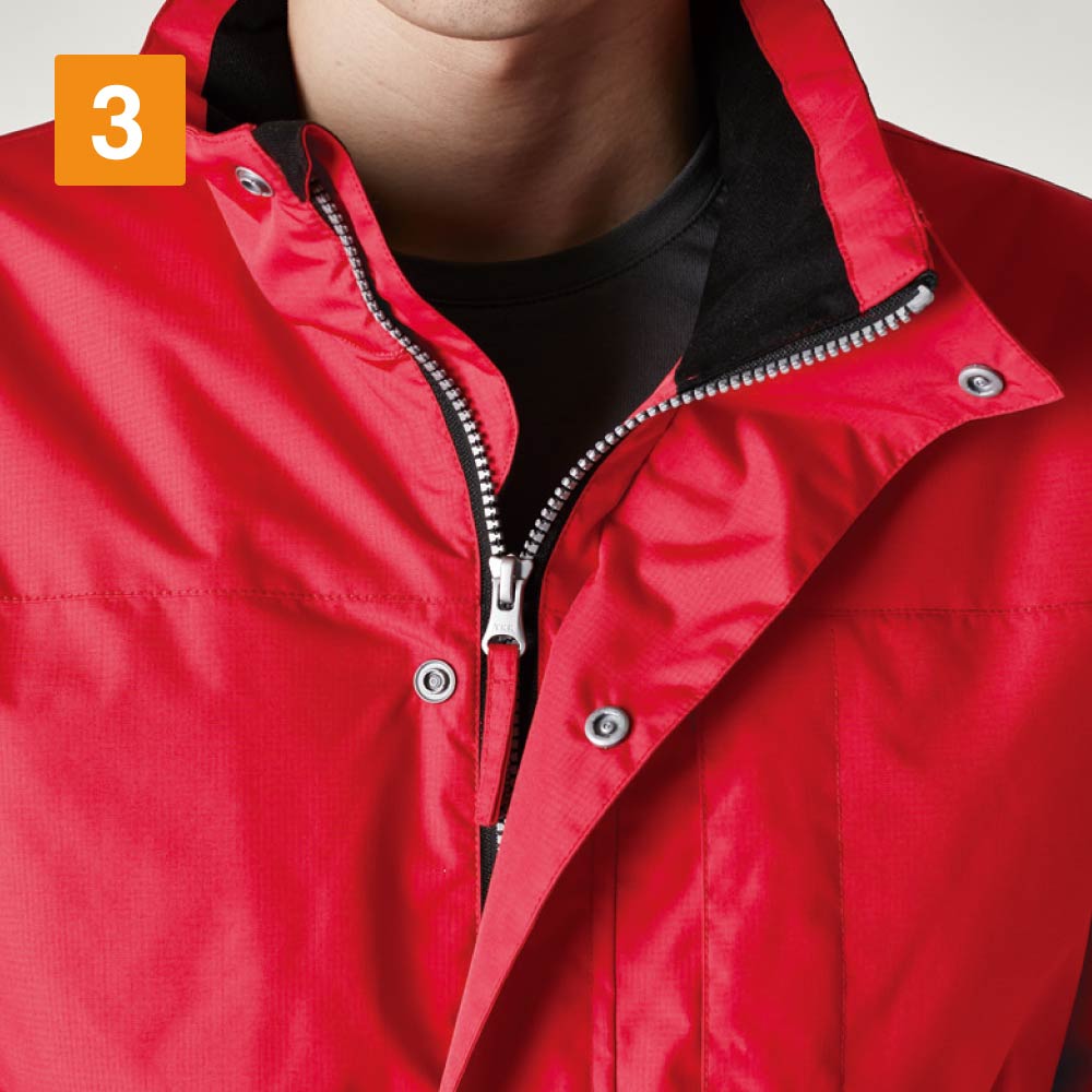 表地から中綿、裏地まであわせて3層のハイブリッド構造で、あらゆる天候や環境から体をしっかり守る一着。表地に採用されているESマイクロリップは、PUコーティングが施された高機能生地。外的環境から体を守る撥水性能や防風性能に加え、制電糸を織り込むことでJIS規格の製品制電 T-8118に適合した高い帯電防止性能を備えています。さらに裏地のアルミ素材、MEGA HEATが体温を反射し服内部に保ちつつ、蒸れを逃がす透湿性をプラス。冬の屋外のあらゆる状況下で快適に過ごせる工夫がなされています。