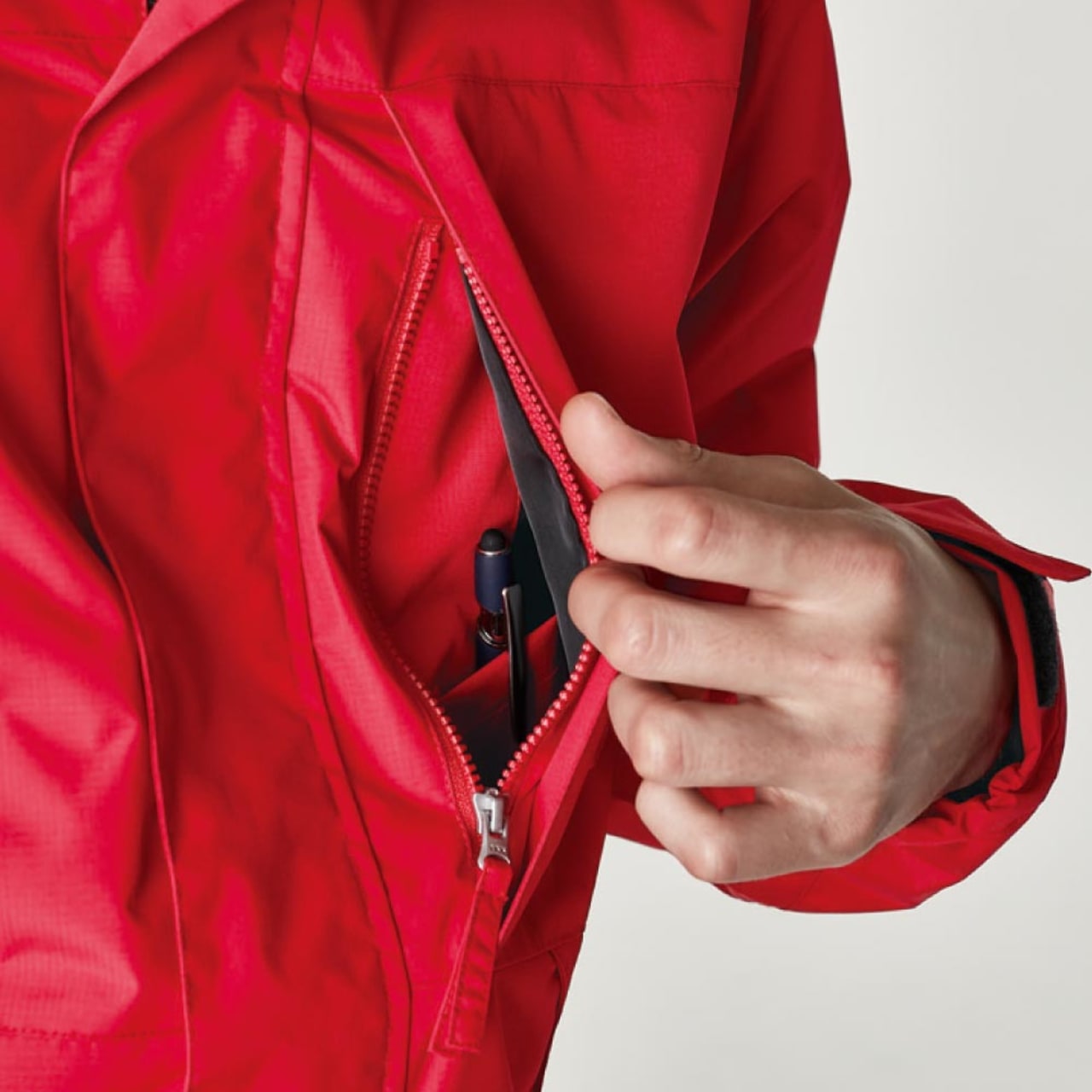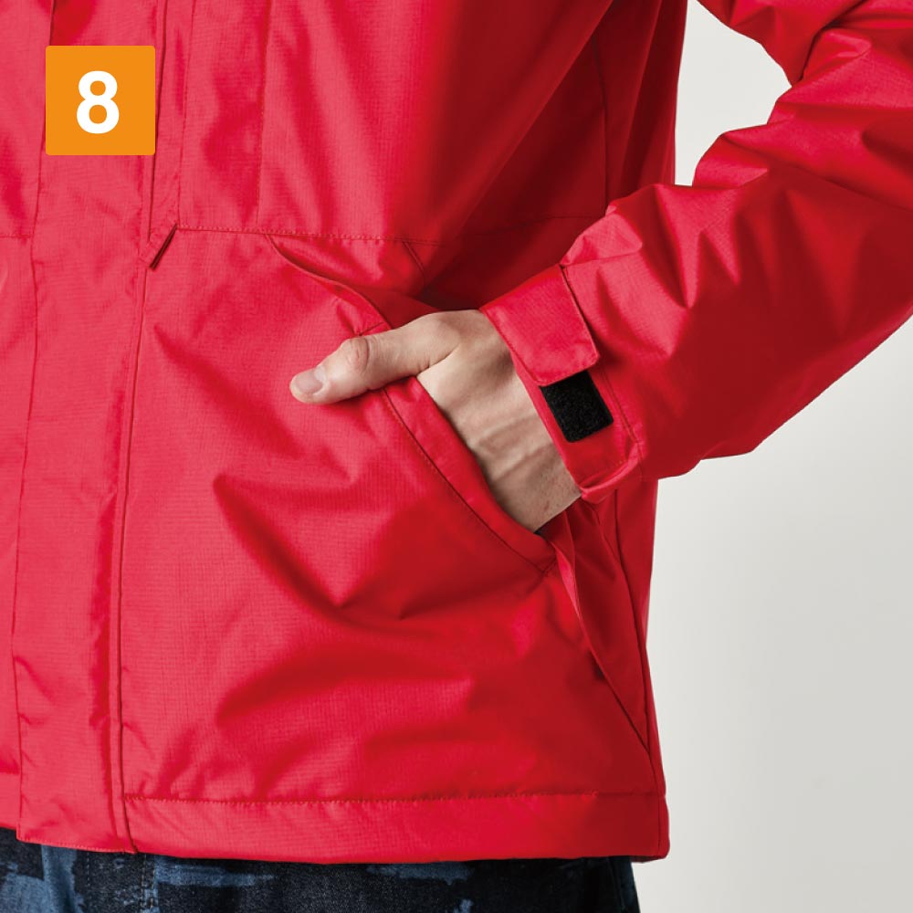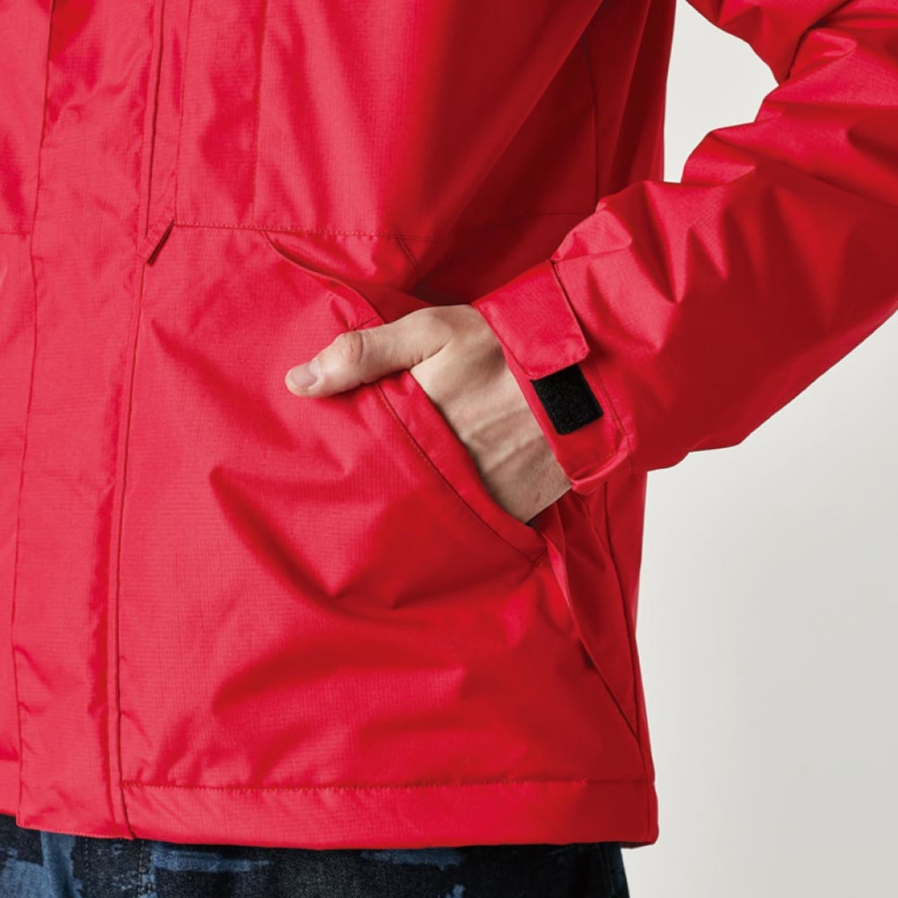 表地から中綿、裏地まであわせて3層のハイブリッド構造で、あらゆる天候や環境から体をしっかり守る一着。表地に採用されているESマイクロリップは、PUコーティングが施された高機能生地。外的環境から体を守る撥水性能や防風性能に加え、制電糸を織り込むことでJIS規格の製品制電 T-8118に適合した高い帯電防止性能を備えています。さらに裏地のアルミ素材、MEGA HEATが体温を反射し服内部に保ちつつ、蒸れを逃がす透湿性をプラス。冬の屋外のあらゆる状況下で快適に過ごせる工夫がなされています。