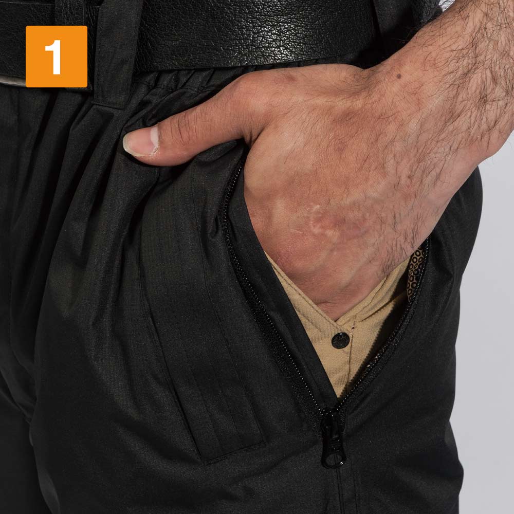 表地、中綿、裏地の3層の生地が一体となって、寒さや雨から体をガード!さらに、服の中を快適に保ってくれるパンツです。表地に使用されているのは、PUコーティングの施された表地マイクロリップ。5000mmの優れた耐水圧で、冷たい風や雨の侵入を防ぎます。さらに、中綿で体温をキープしつつ、裏地のアルミ素材、MEGA HEATの持つ2000g/㎡-24hもの透湿性が服内部の蒸れた空気を常時外に排出。汗による冷えも防ぎます。また、アルミ素材が体温を反射し、よりさらにぬくもり感をアップ。優れた保温性能が自慢のウェアです。