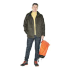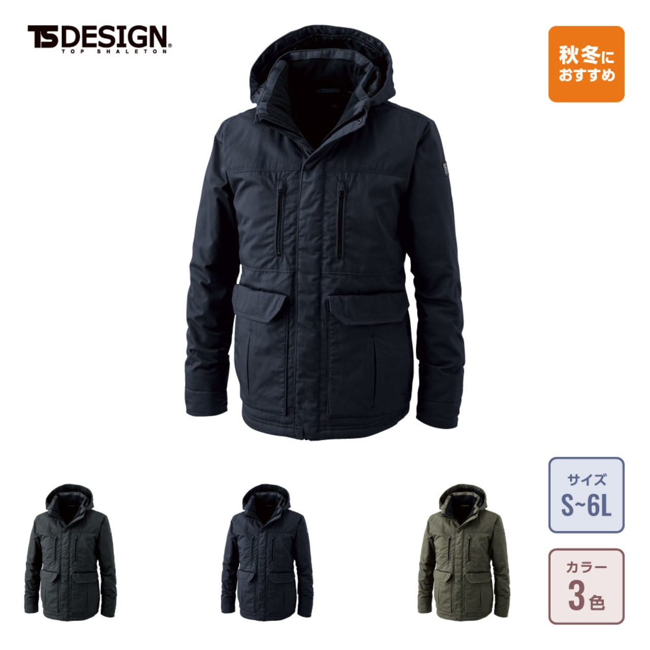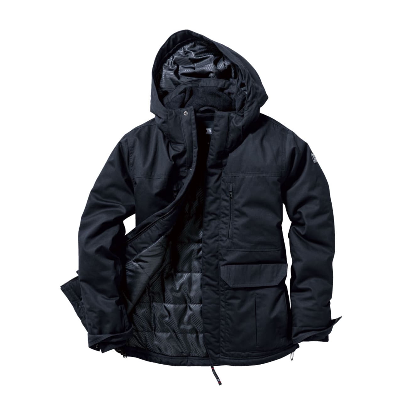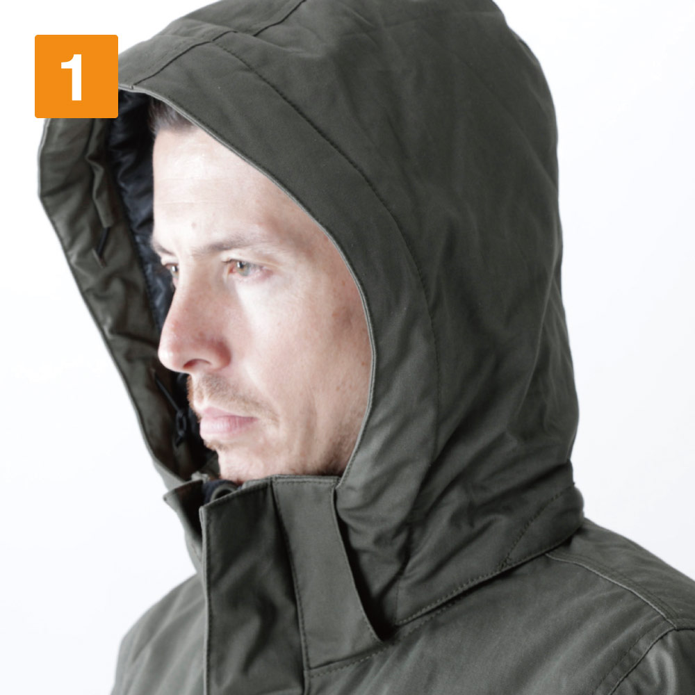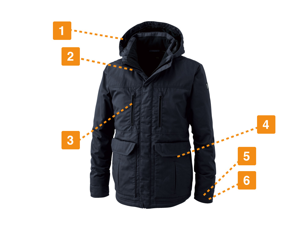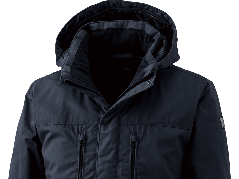 本体生地であるブロックツイルの、綿100%ならではの風合いが魅力のハーフコート。着用を重ねるごとに体に馴染み、心地よさがアップしていくのも着用の楽しみのひとつです。また、脚の動きを邪魔せず、腰回りまであたたかい絶妙なハーフ丈デザインが真冬の作業に最適!中綿がしっかり入った肉厚デザインで、保温性能もしっかり備えた一着になっています。さらに、生地は撥水加工が施されることで、突然の雨など天候の変化にも慌てることなく対応可能です。