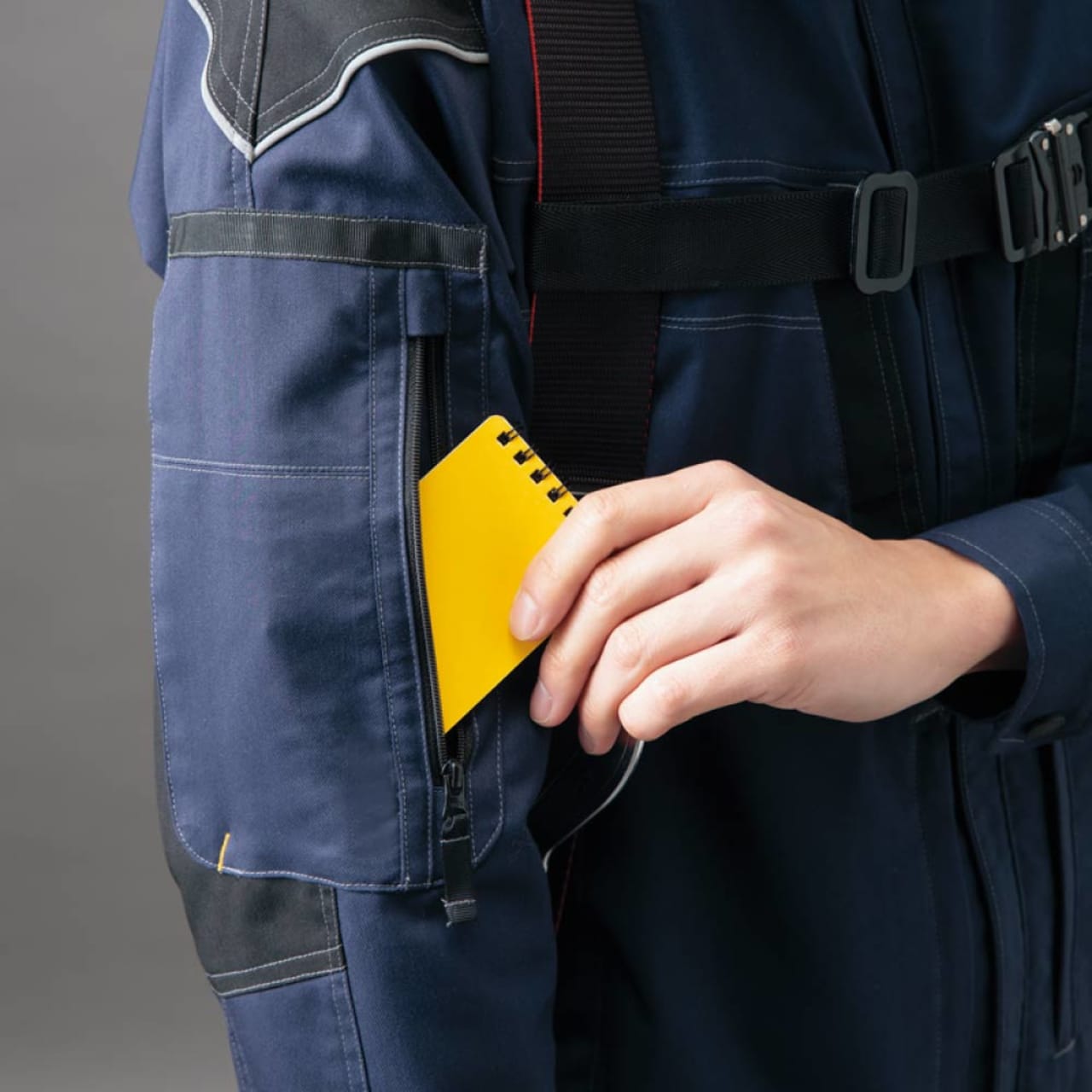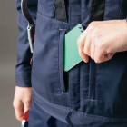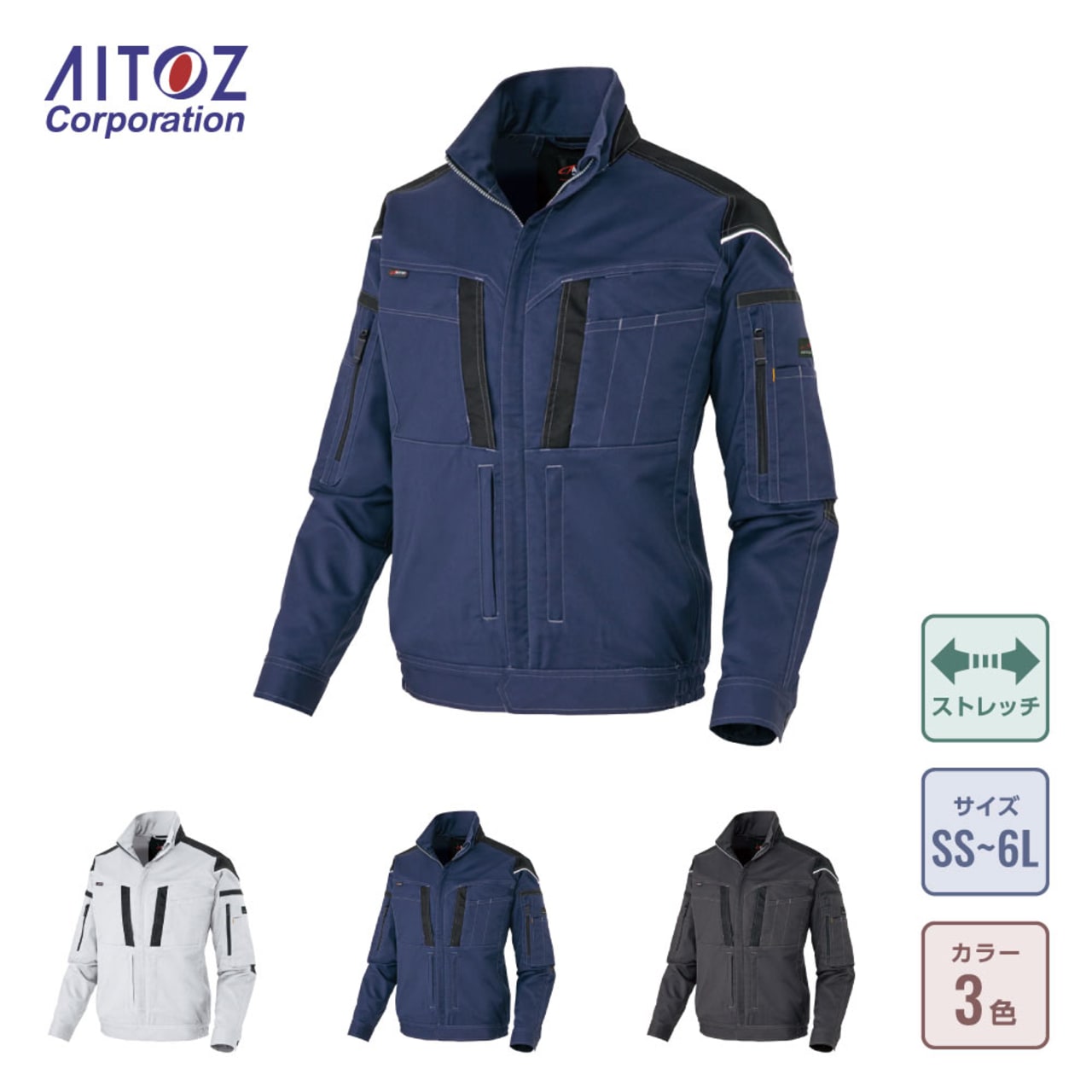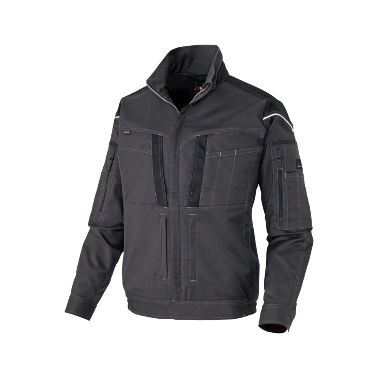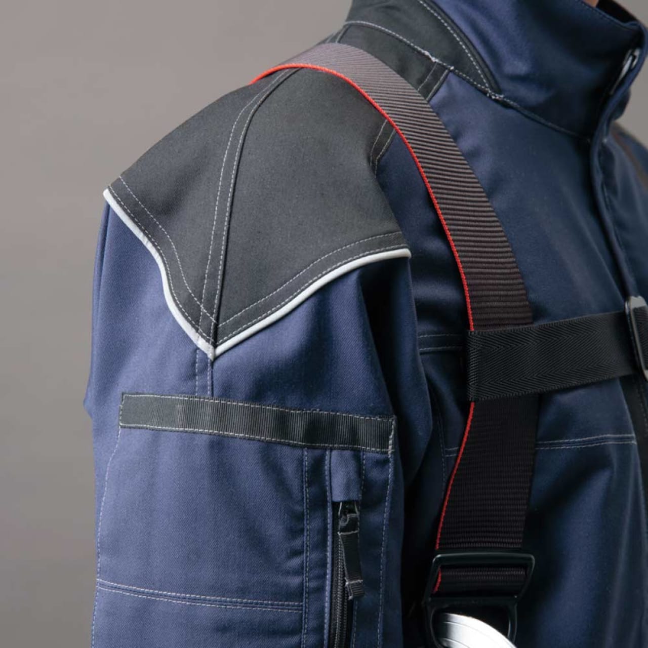 フルハーネスの着用を想定して丁寧に設計されたワークウェアです。生地には摩耗に強く堅牢かつストレッチ性に優れたT/C素材、バンジーテックが使用され、抜群の動きやすさを実現しています。背中部分には生地を立体的に構成するムービンカットが採用されており、前かがみなどの姿勢もラクラク。体を大きく動かす作業にもストレスを感じさせません。軽くて丈夫なため疲れにくいのもポイントです。また、摩耗しやすい肩や襟下、肘などは耐久ストレッチ素材で切り替えることで耐久性をアップ。長く着用いただける一着になっています。