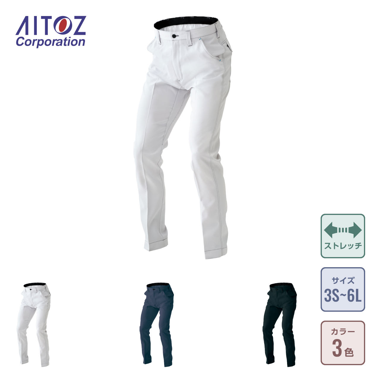 着る人の快適さにこだわったワークパンツ。本体生地のストレッチドビー織りは高いストレッチ性能と防風性を持ち、さらに帯電防止加工をプラスした備えた万能素材。古着から生まれた再生生地を使用し、エコの観点からも優れたウェアです。スマートなデザインながら、背中側にウエストはゴム入りのシャーリングが採用され、ウエストサイズや体勢の変化によらず常に心地よくフィットするのもポイント。着用感もしっかり両立した高機能なウェアに仕上がっています。