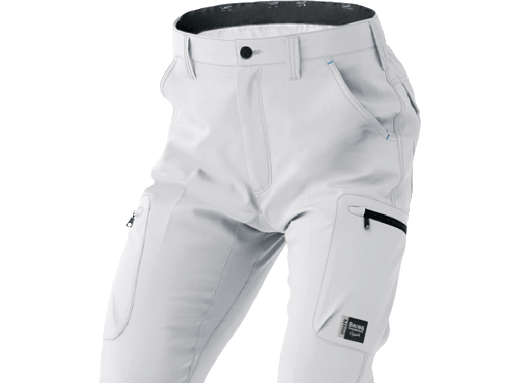 生地の持つ優れた機能をとことん活かした、快適さが特徴のパンツ。本体に使用されているのは、エコの観点からも優れた再生生地ストレッチドビー織り。優れたストレッチ性能に、帯電防止加工をプラスし静電気の発生を防いでくれます。また、ノンストレスな着用感にこだわりを感じる設計にも注目です。背面側の腰部分はゴム入りのシャーリング仕様になっており、ウエストサイズの変化にもやさしく追従。常に心地よいフィット感で着用いただけます。