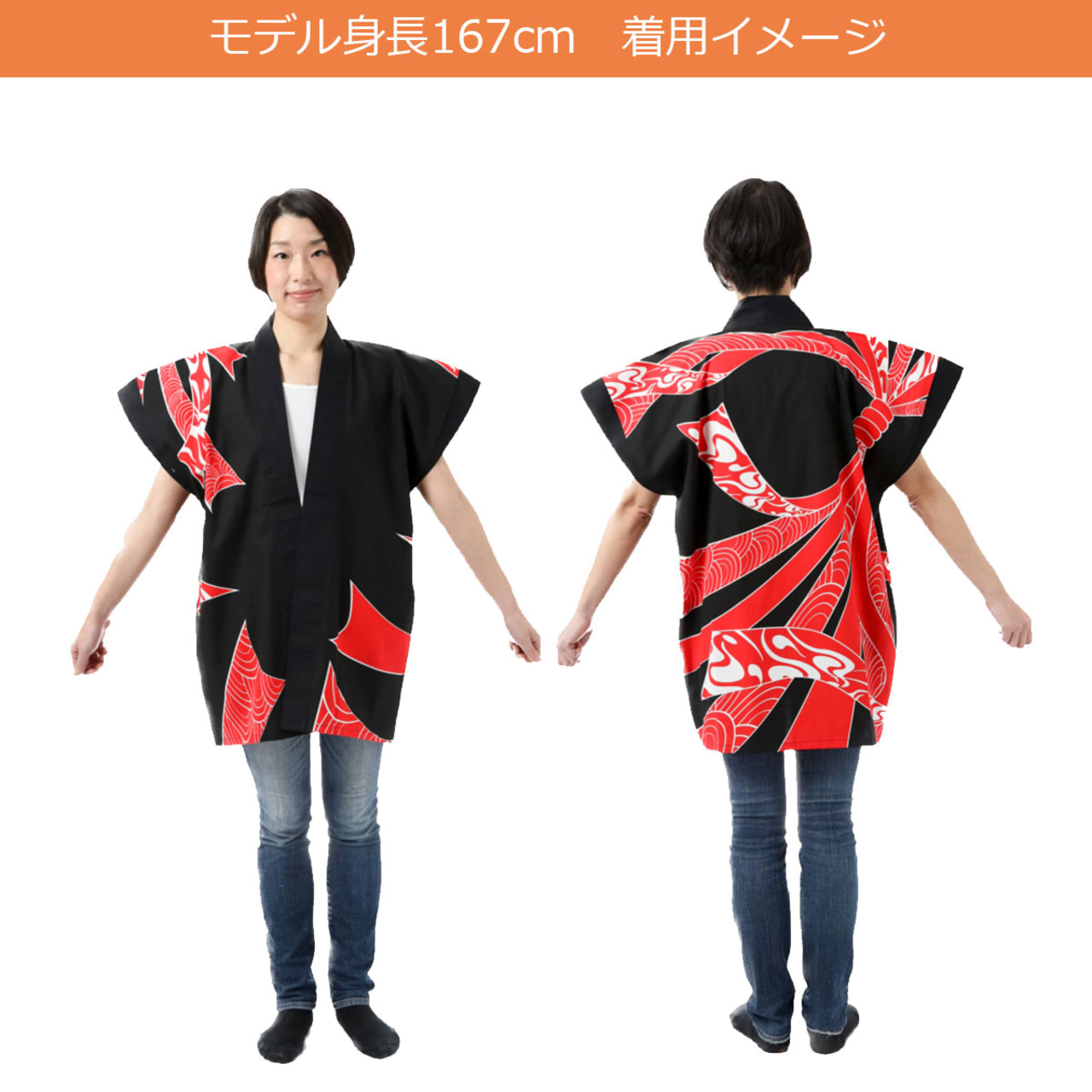 袖無しはっぴの既製品は割高になりがちですが、カメオカでは独自に大量生産をし、在庫を持つことでコストを下げ、リーズナブルな価格でご提供が可能になっております。