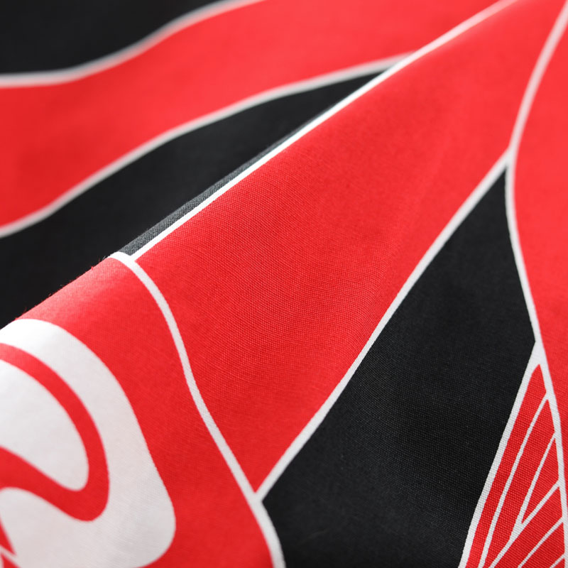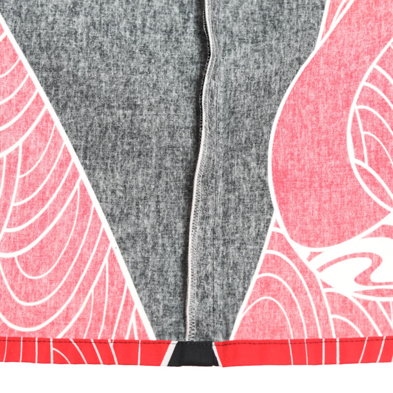 綿100%素材を使用しているので風合いと通気性はとっても良いです。染色方法はひと手間かかる反応染を採用しています。反応染とは、染色した後に蒸して発色させ、生地を洗い、最後に色落ちを防ぐ薬剤を施す方法です。手間がかかる方法ですがとても良い仕上がりになります。