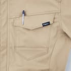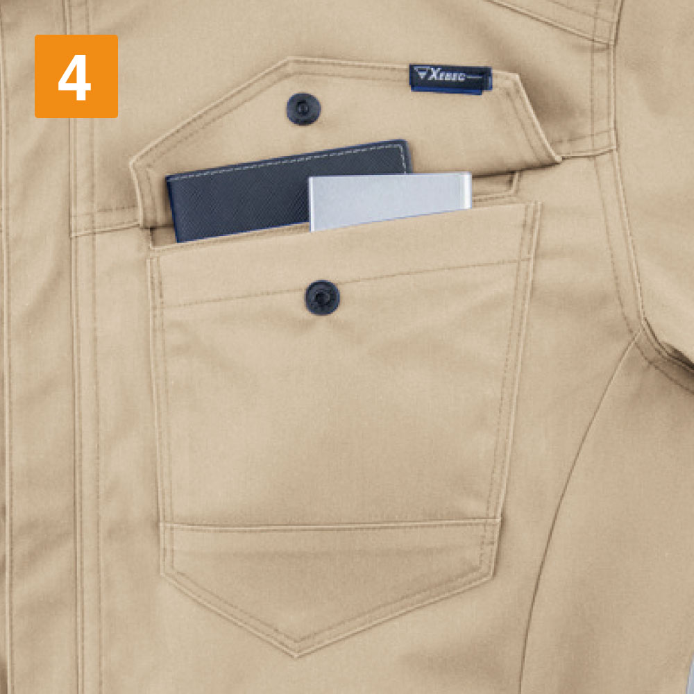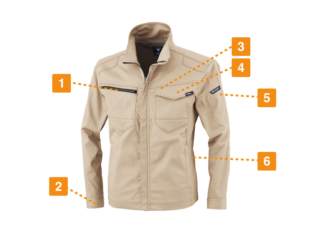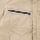 洗練されたデザインが特徴のワークウェア。高機能生地を使用し、作業性にも優れた一着です。本体生地には、3層構造で優れた耐久性を持つ、ストレッチツイルが使用されています。「ストレッチ」の名の通り優れたストレッチ性を持つ生地で、動きを妨げず作業を快適にしてくれる一着です。さらに、JIS規格T-8118に対応した優れた帯電防止性能や、屋外作業時の突然の雨などにもスマートに対応できる撥水性能を備えており、幅広い現場で安全かつノンストレスにお過ごしいただけるウェアになっています。