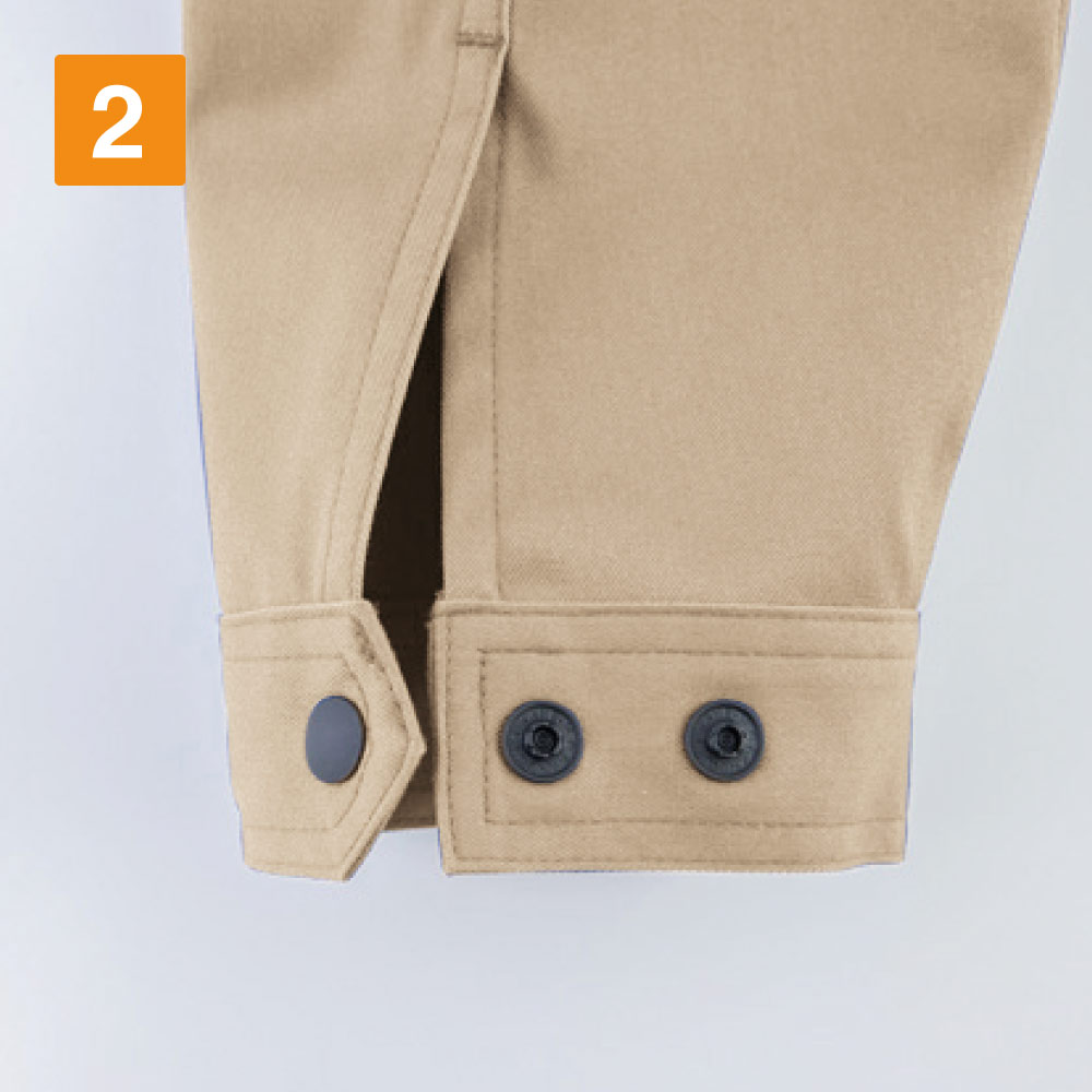 袖口は2段階に調整できるアジャスター付き