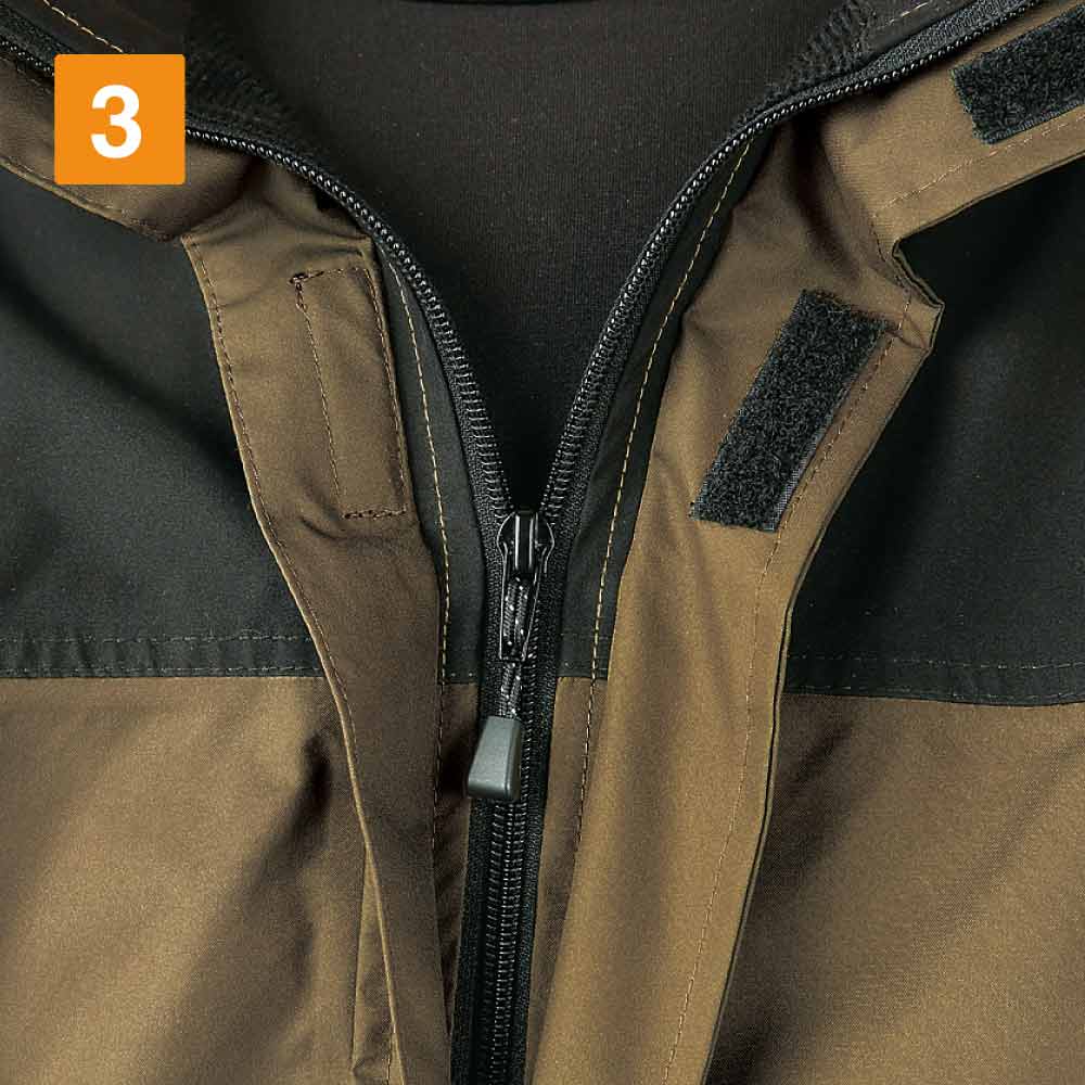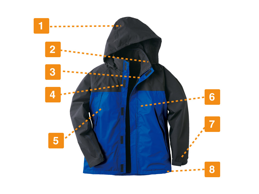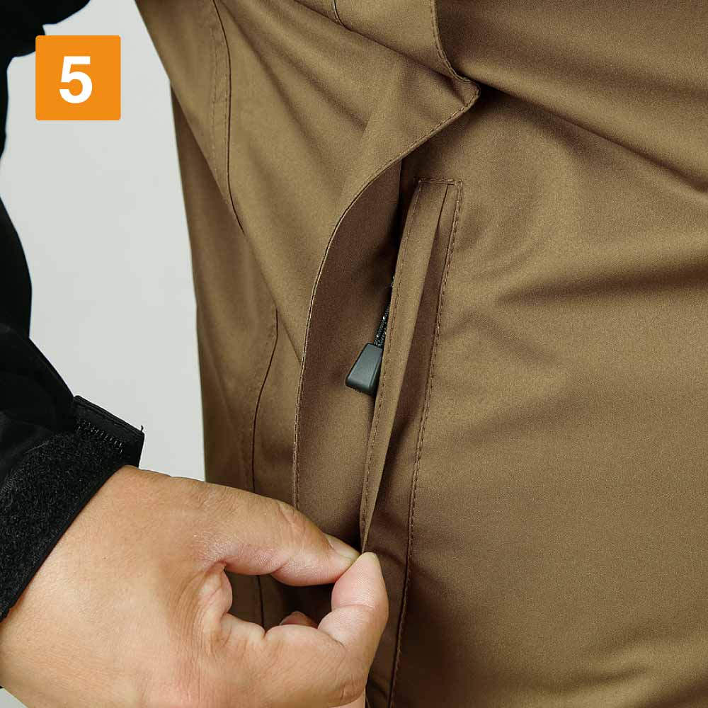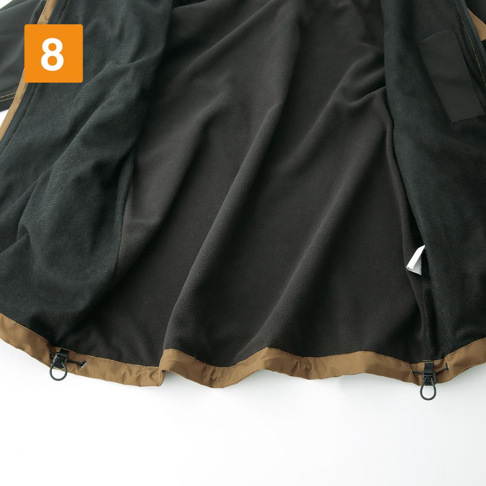 防寒ウェアながら高いストレッチ性で軽快な動作を可能にしてくれるアイテムです。疲労を感じにくい軽量設計で、長時間の着用にも最適。まさに過酷な冬の屋外作業のためにデザインされたウェアです。耐水圧10000mm、透湿性30000g/㎡-24hと高い性能で寒冷地や水濡れのある現場での着用も快適にしてくれるのもポイント。前立てには水返しが付いており、雨水の侵入を強固に防いでくれます。袖口の面ファスナーや裾のドローコードで冷気の侵入を防ぎつつ、内側生地には優れた保温性能を持つ起毛生地が使用されるなど、環境によらず服内部をいつも快適な状態にキープする一着です。