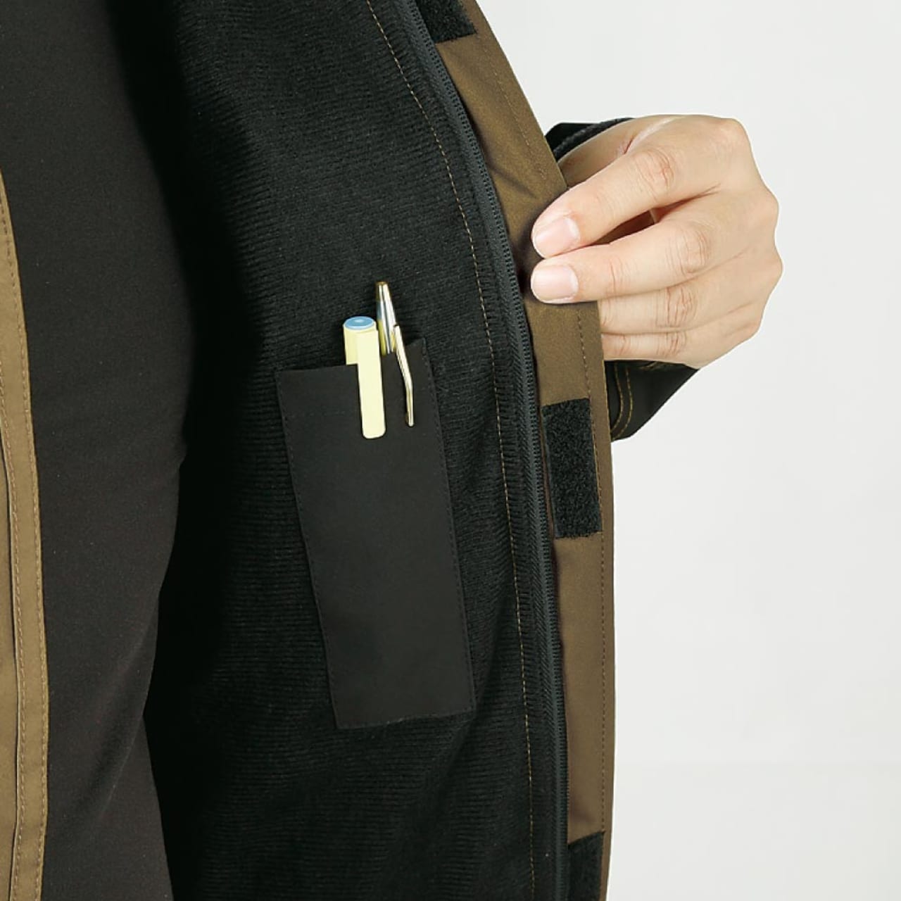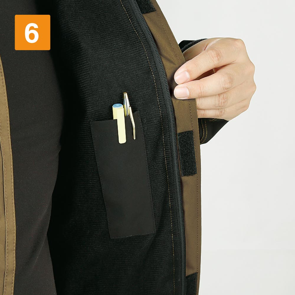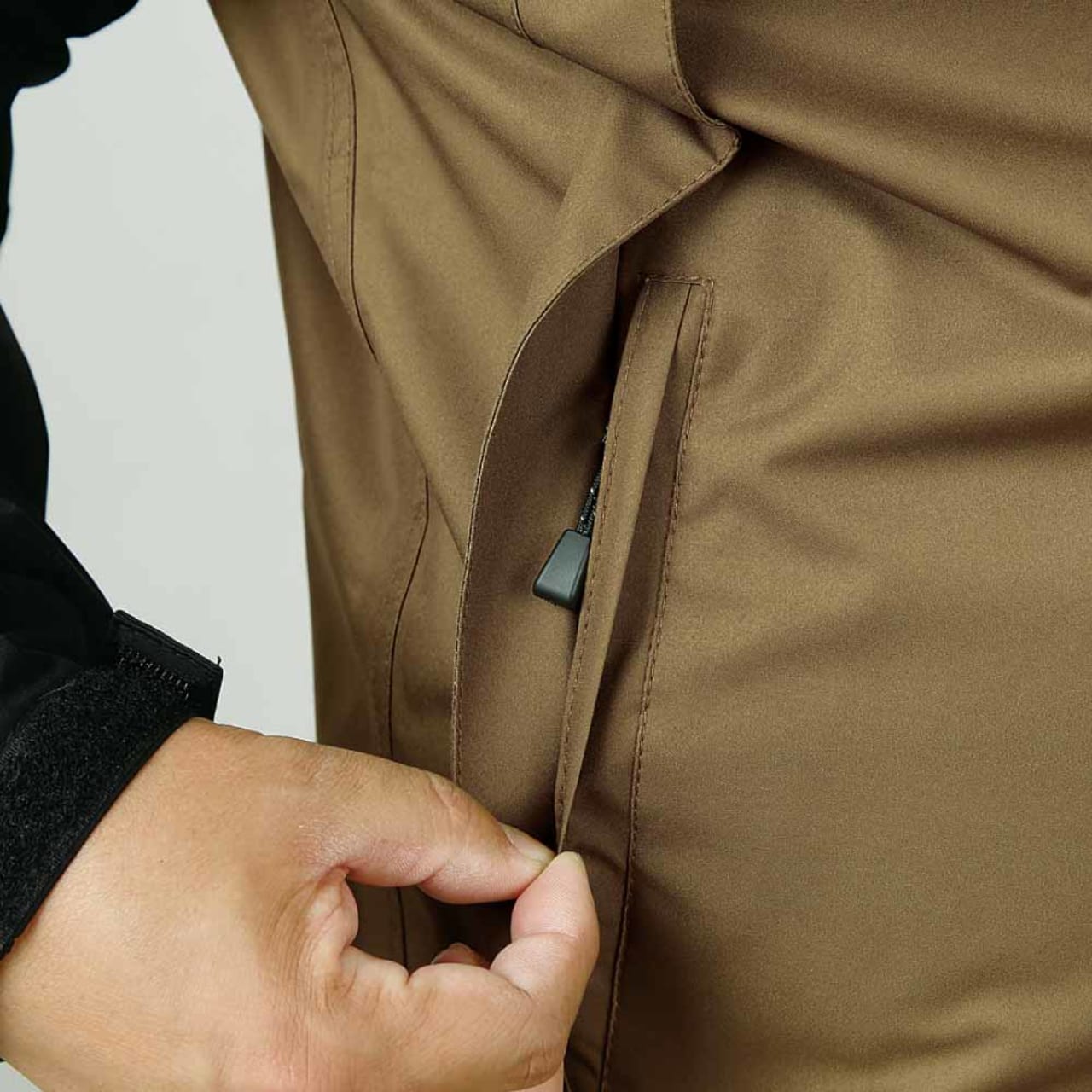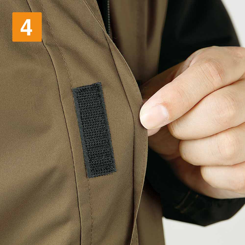 防寒ウェアながら高いストレッチ性で軽快な動作を可能にしてくれるアイテムです。疲労を感じにくい軽量設計で、長時間の着用にも最適。まさに過酷な冬の屋外作業のためにデザインされたウェアです。耐水圧10000mm、透湿性30000g/㎡-24hと高い性能で寒冷地や水濡れのある現場での着用も快適にしてくれるのもポイント。前立てには水返しが付いており、雨水の侵入を強固に防いでくれます。袖口の面ファスナーや裾のドローコードで冷気の侵入を防ぎつつ、内側生地には優れた保温性能を持つ起毛生地が使用されるなど、環境によらず服内部をいつも快適な状態にキープする一着です。