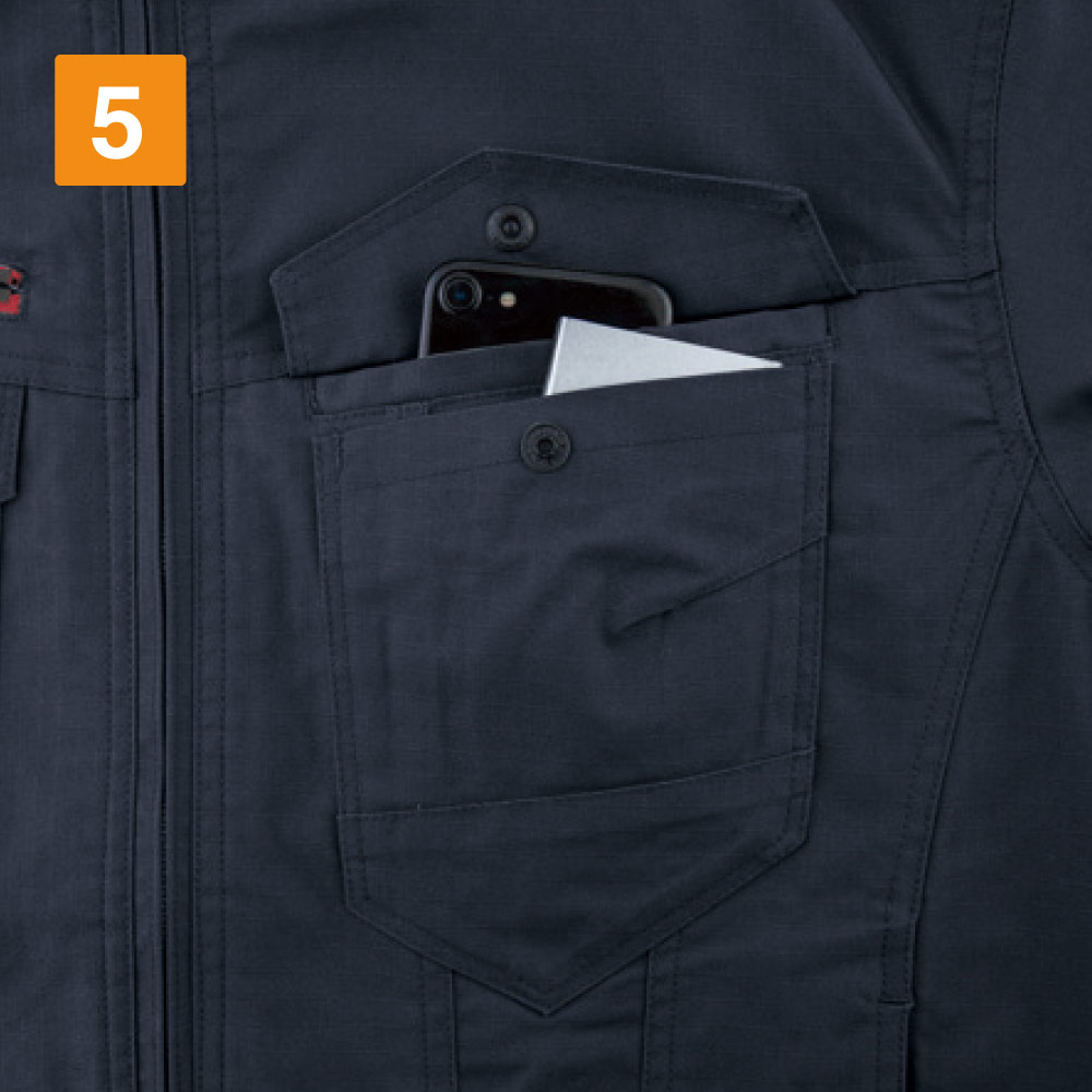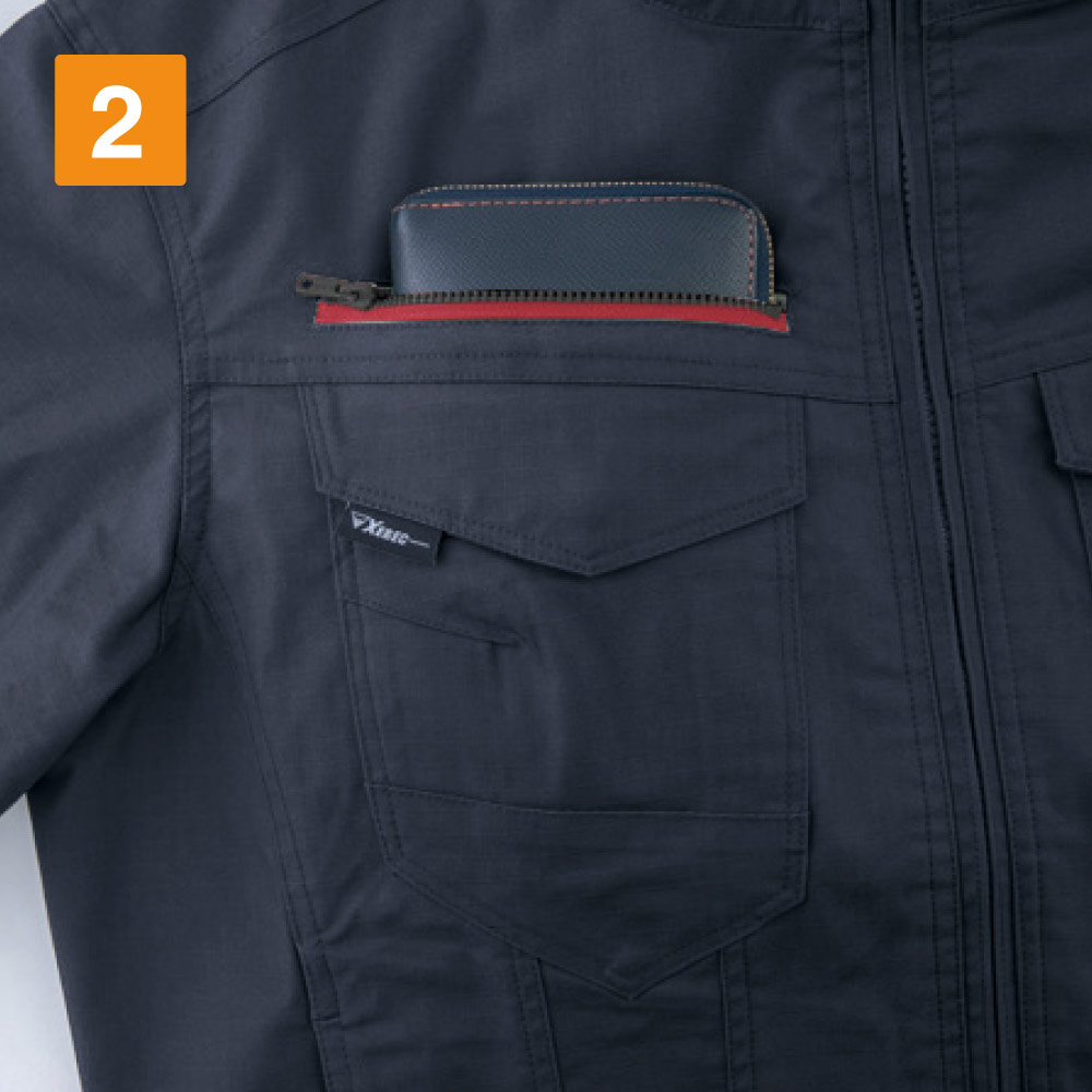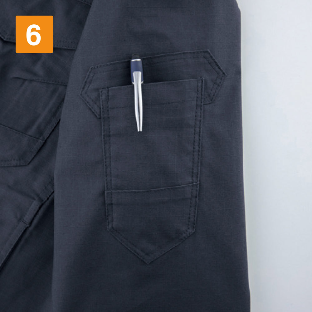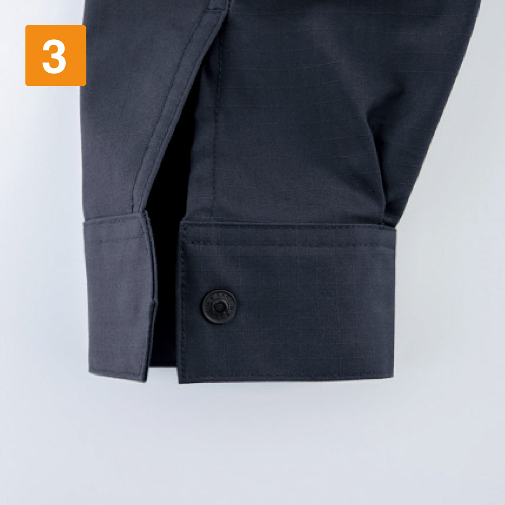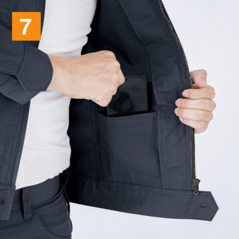 スタイリッシュなデザインに豊富な機能をプラスし、様々な環境下での安全かつ快適な着用を支えてくれる一着です。本体生地として採用されているのは、ひっかきや破れに強いリップストップストレッチ。ストレッチ性に優れ、運動時や現場作業などでもストレスを感じさせません。またJIS規格T-8118に適合した帯電防止性能を備えることで、静電気NGの現場にも対応。さらに背中にはメッシュが使用され、高い通気性で汗をかいても心地よくお過ごしいただけるなど、あらゆるシーンでお仕事を支えてくれるウェアになっています。