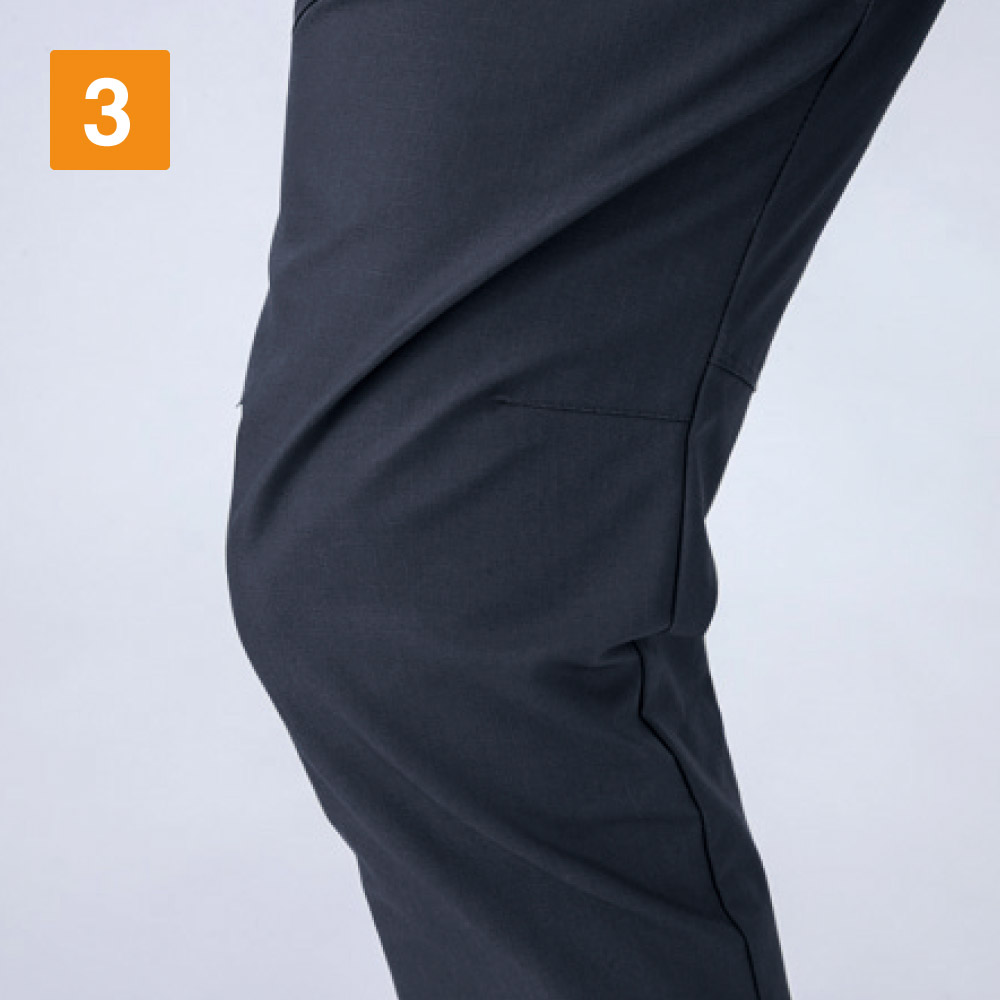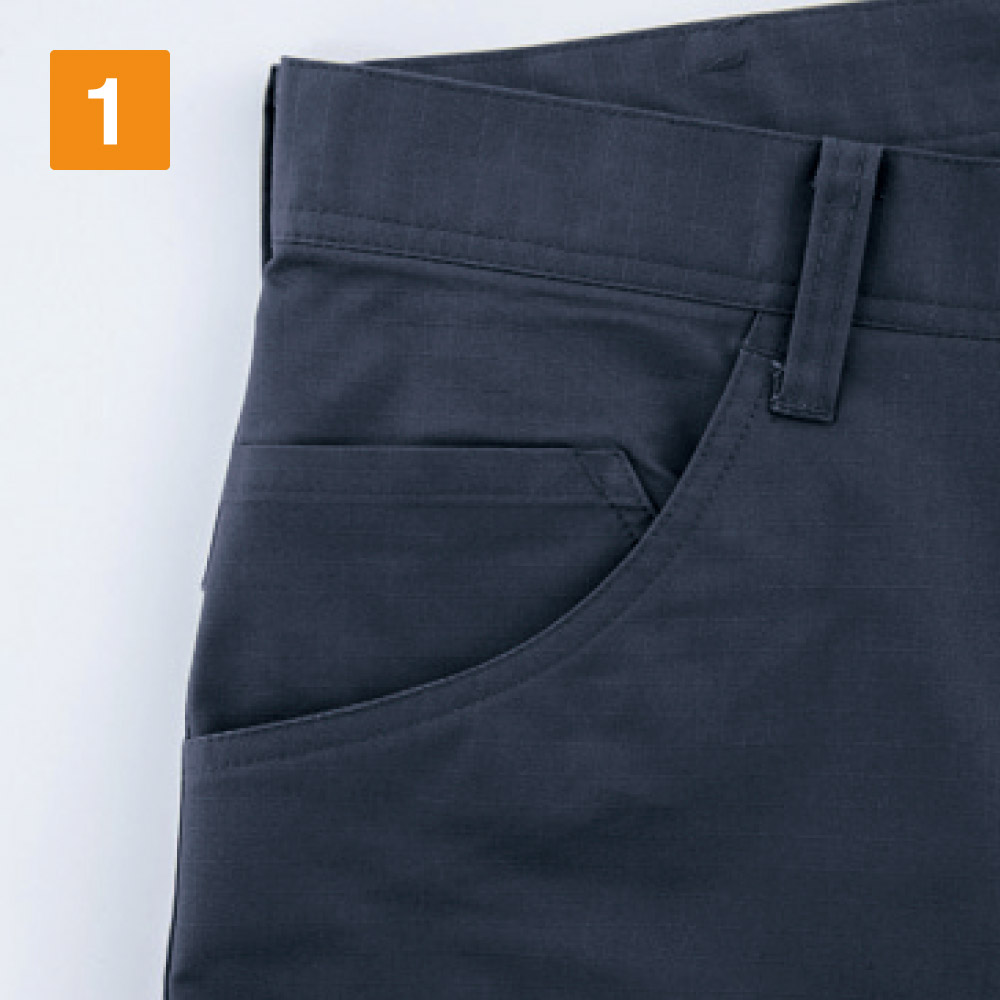 美しいシルエットデザインに、豊富な機能をあわせ持ったスラックス。生地として採用されているリップストップストレッチは、ストレッチの名の通り、優れた伸縮性能が特徴の生地です。体を動かす作業でも動作にひっかかりがなく、ノンストレスな着用感に。また、ひっかきや破れに強い堅牢性を備えており、作業着としてのタフさも魅力のひとつです。さらに、JIS規格T-8118に適合した優れた帯電防止性能を備えているのもポイント。不快な静電気の発生を抑えるだけでなく、幅広い現場での着用を可能にしています。