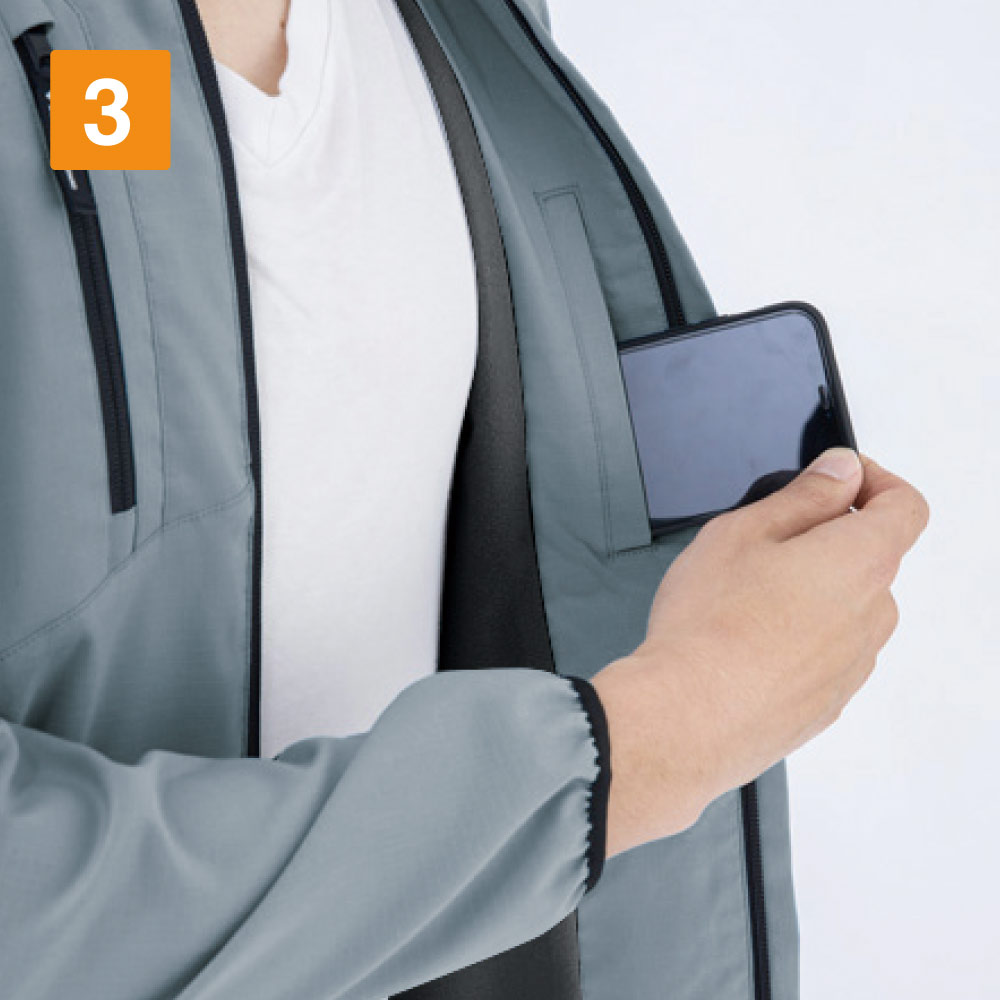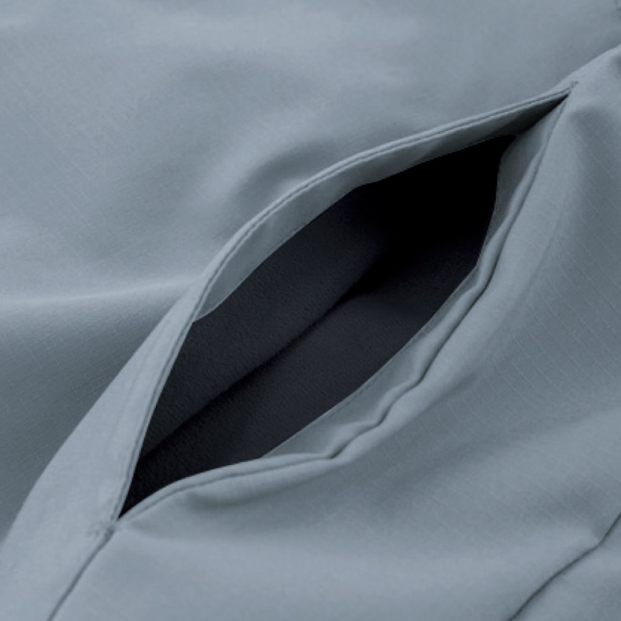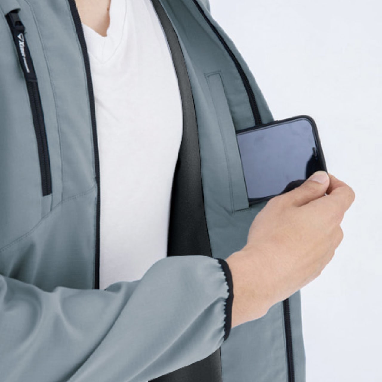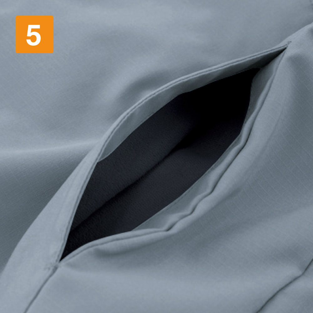 シンプルだからこそどんな職種にもお勧めできる一着です。本体生地に使用されているエコストレッチリップストップは、引っかきや破れに強い高機能生地。ストレッチ性能も備えているので、体を動かす現場作業にもぴったりです。また、撥水加工が施されることで、水や汚れを寄せ付けず、お手入れも楽に行っていただけます。さらに、背当て部分には蓄熱メッシュ、裏地にはトリコット起毛素材が使用されるなど、寒い季節の着用にも配慮がなされています。シンプルながらあらゆる機能を備え、お仕事をサポートしてくれるウェアです。