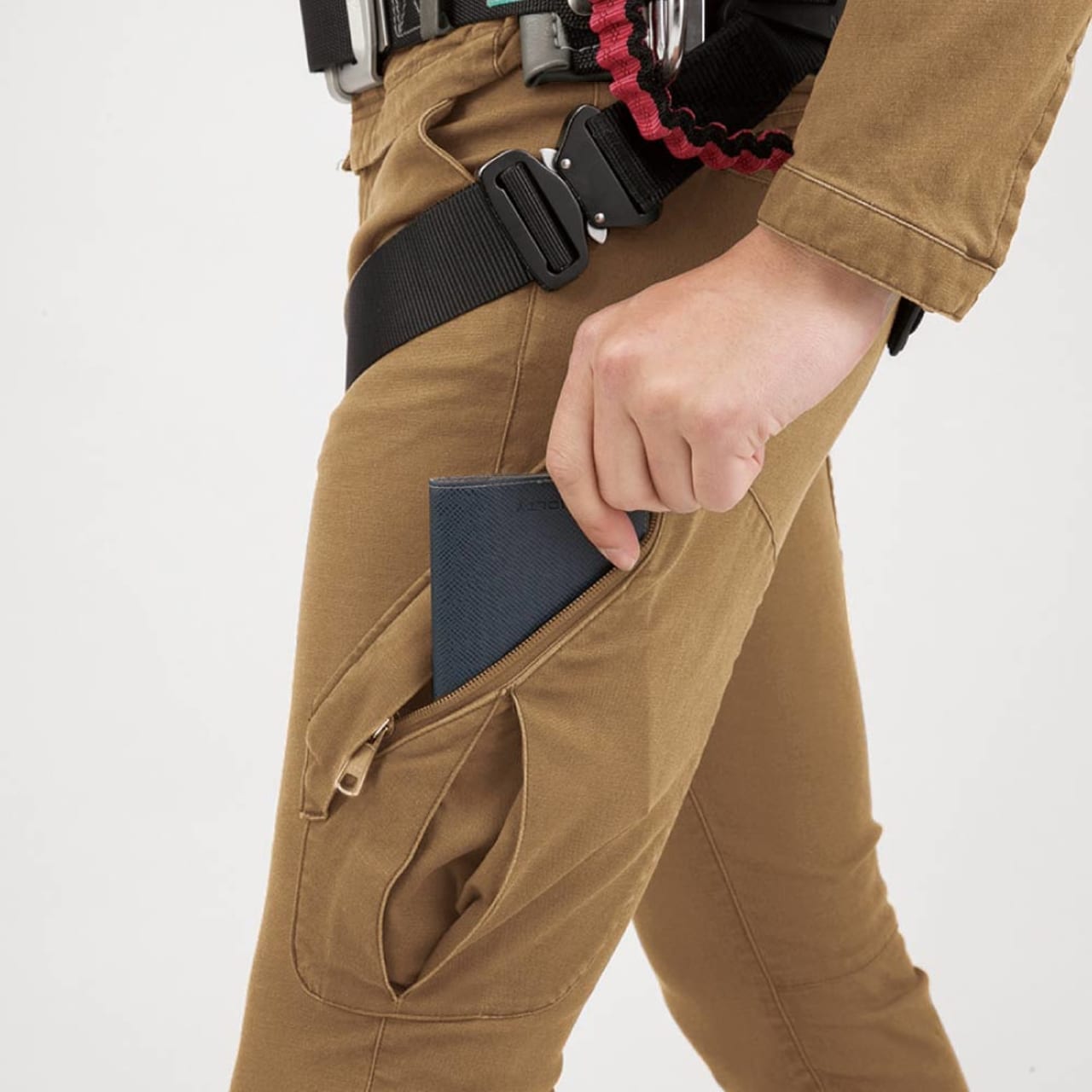 ミリタリー感のあるこなれた生地を使用し、すっきりとしたジョガーパンツスタイルにまとめたおしゃれな一着です。ブーツインもしやすく、着こなしのアレンジも楽しめるのがポイント。また、オイルタッチの特殊コーティングを施したキャンバス生地に、洗い加工を施すことで、他にはない風合いを楽しめるパンツになっています。さらに生地は優れたストレッチ性能を備えており、動きやすさも抜群。スマートなルックスながら、現場作業でも快適に着用いただけるウェアになっています。