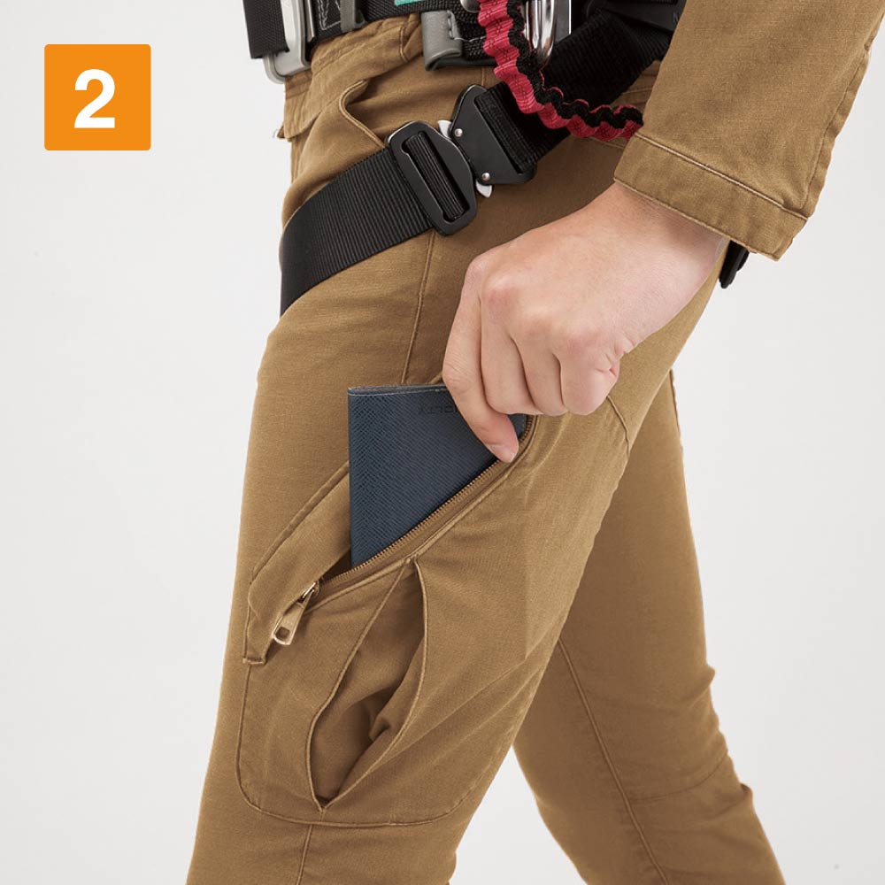 フルハーネスをしたままでも使えるカーゴポケット位置