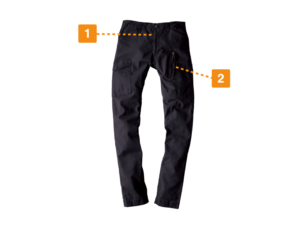 ミリタリーテイストを取り入れた洗練されたデザインと、コーティング&洗い加工を施したこだわりの生地を組み合わせた、おしゃれに着こなせるカーゴパンツです。だぶつかないすっきりとしたシルエットで、合わせるウェアを選ばずコーディネートもしやすい一着。さらに、生地の持つストレッチ性で作業性も抜群。現場でのアクティブな動きにしっかり追従してくれます。スマートな見た目ながら作業用としても考え抜かれた、実用性の高いウェアです。