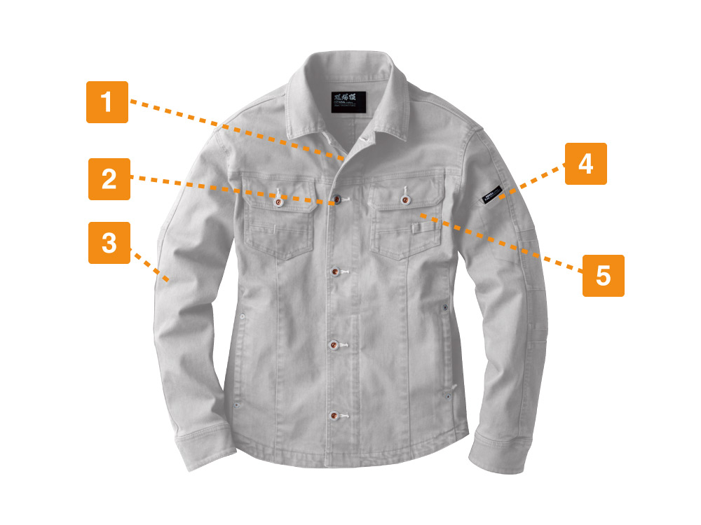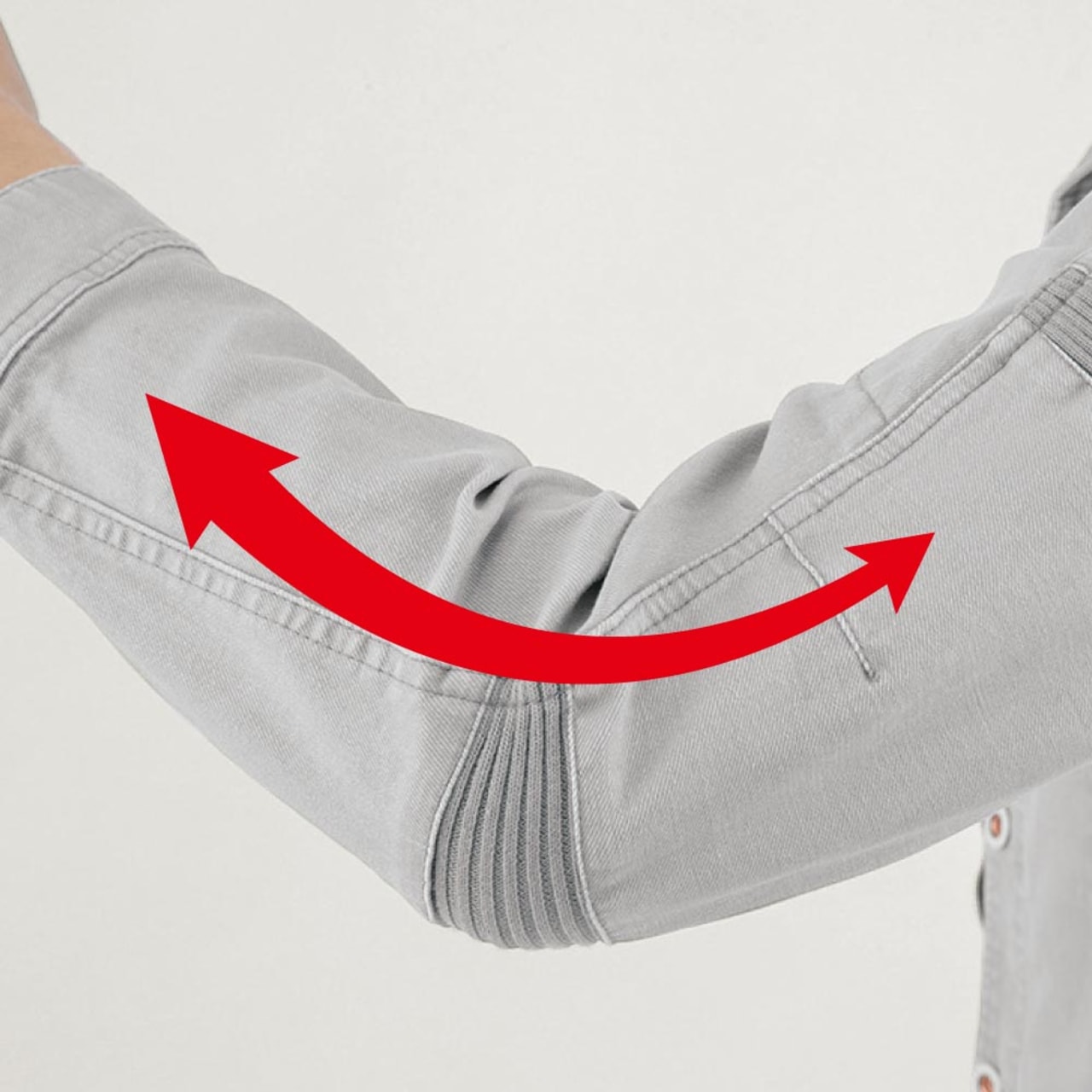 流行のシャツジャケット風デザインを採用した、トレンド感あふれるワークブルゾン。生地は太さに強弱のある糸を使用した、ストレッチスラブツイル。伸長率25%を超える優れたストレッチ性能が特徴です。さらに、肘部分はリブニットが使用されることで、肘の曲げ伸ばしがとてもスムーズに。加えて、生地が立体的に組み立てられているので、動作につっかえを感じさせません。製品には、あらかじめ洗い加工が施されており、独特のヴィンテージなテイストを感じられるのもこだわりのポイントです。
