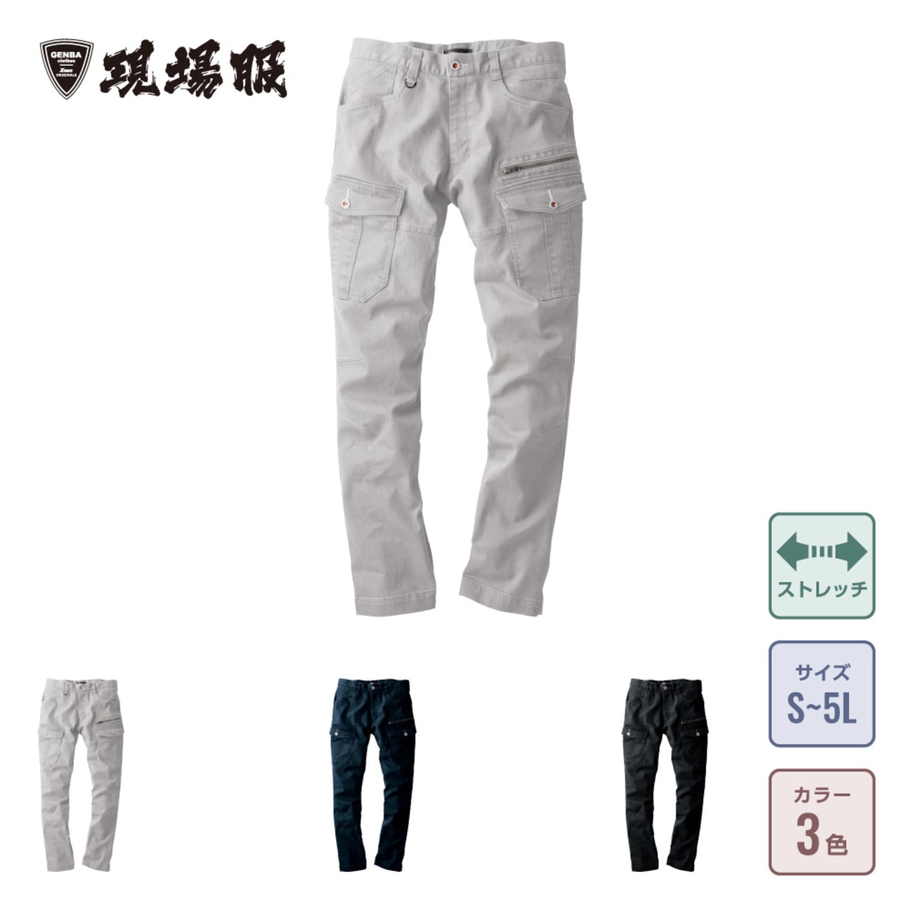 ゆったりしすぎないストレートシルエットがおしゃれなデザインカーゴパンツです。生地の質感に大きな特徴のある一着で、使用されているのは糸の強弱による独特の表情を感じられるストレッチスラブツイル。こなれた質感を持つだけでなく、伸長率25%の優れたストレッチ性で動きやすさもしっかり備えています。さらに、膝部分にとられたダーツで動きやすさがさらにアップ!現場でのノンストレスな作業を実現するウェアになっています。