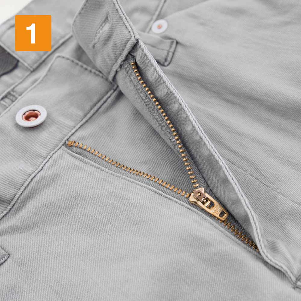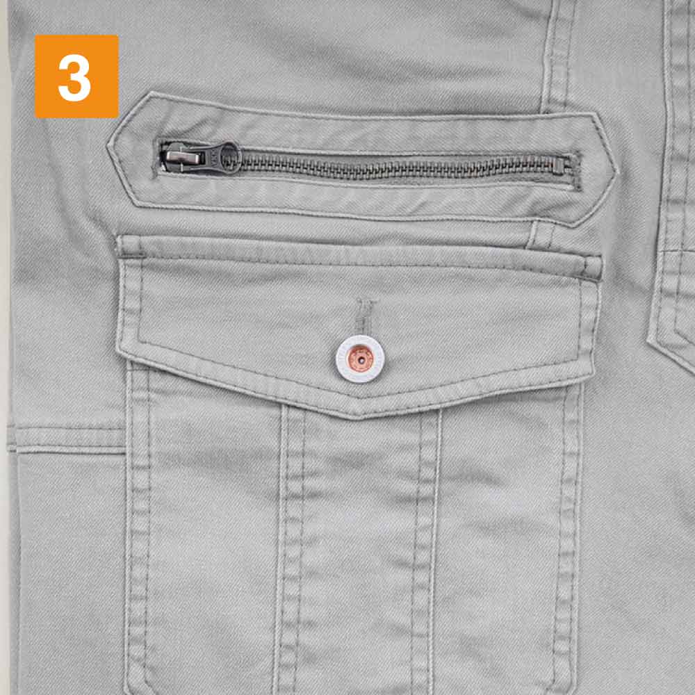 前中央ファスナーは丈夫な3YGファスナー