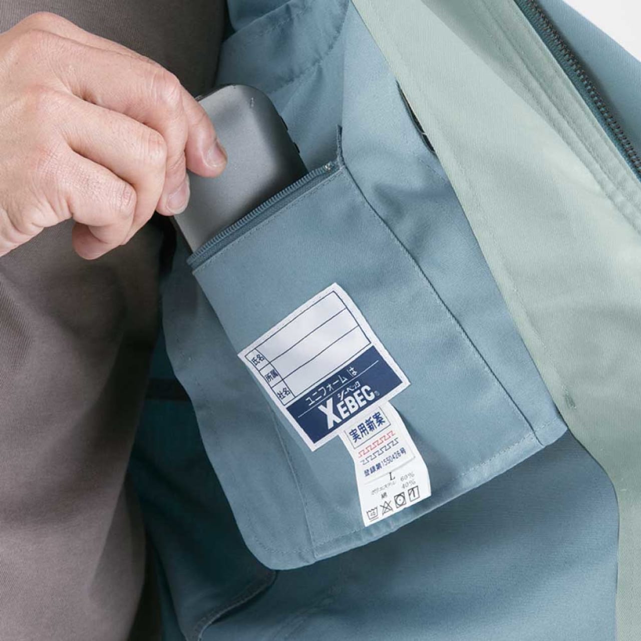左胸ファスナー付き内ポケット