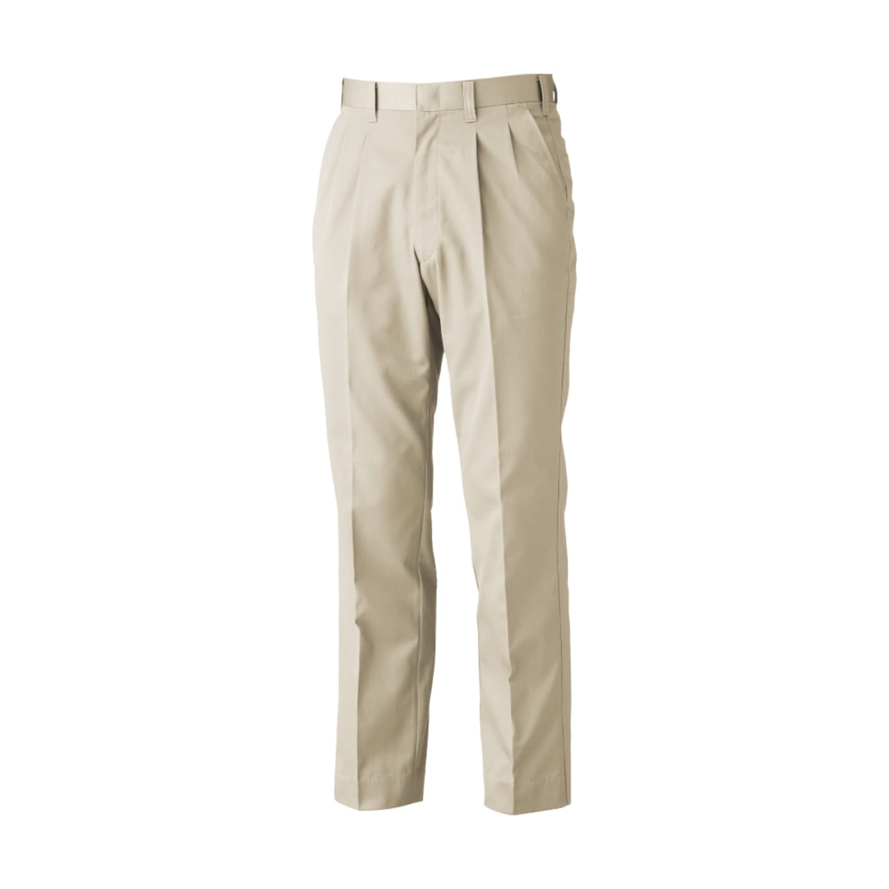 定番のデザインで、お仕事姿により誠実な印象をプラスしてくれるスラックスです。注目はその着心地。本体に使用されているソフトツイルは、やわらかな風合いが特徴のポリエステルと綿を混紡した素材。ハードワークにも耐える堅牢性と、やわらかくやさしい肌ざわりをどちらも備えています。さらに生地には撥水加工が施され、汚れのつきやすい環境でのお仕事や突然の雨でも、水や汚れがしみこみにくいのもポイント。お手入れも楽に行えるウェアになっています。