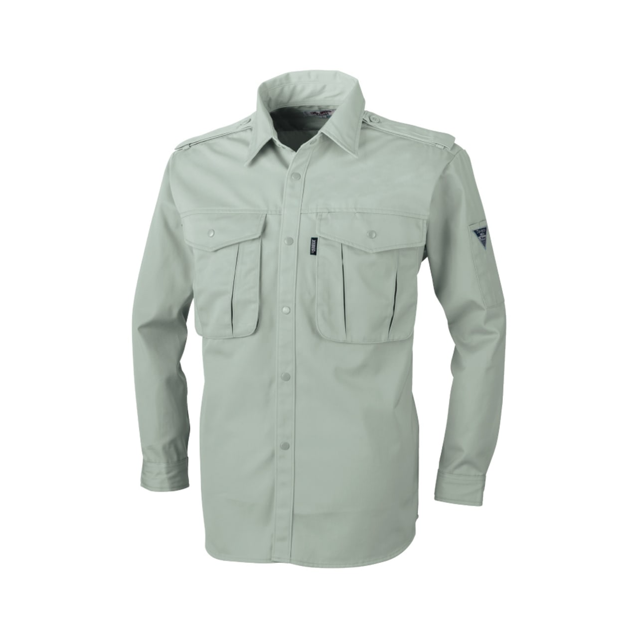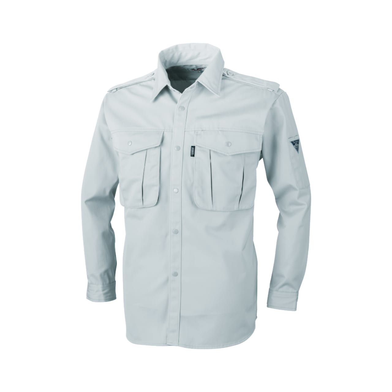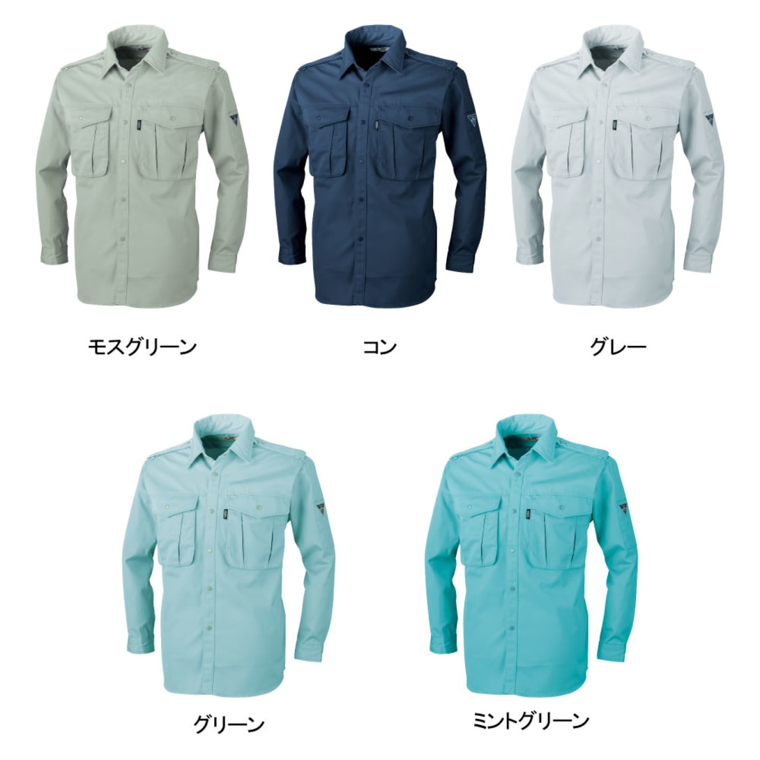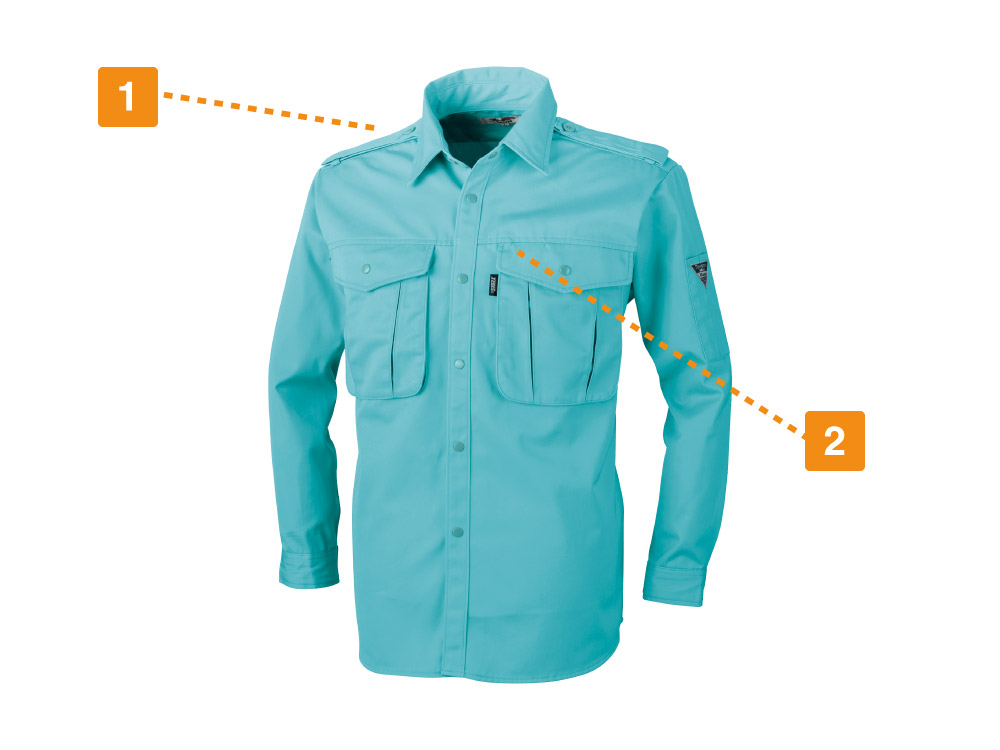 流行に流されない、定番のかっちりとしたデザインが特徴のワークシャツです。普遍的なデザインで、事務作業から現場作業まで、幅広く着用できる一着になっています。また、生地の持つ機能でお仕事をしっかりアシストしてくれるのもポイント。本体生地には、堅牢性が特徴のツイル生地が使用されています。生地には撥水加工が施されることで、屋外や汚れの付きやすい環境での着用にも慌てず対応可能です。さらに、帯電防止性能を備えているので、不快な静電気の発生をカット。屋内外問わず、ノンストレスな着用を叶えます。
