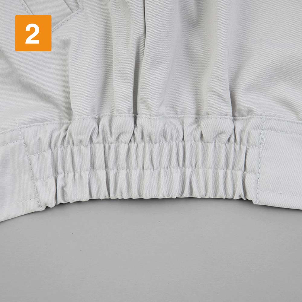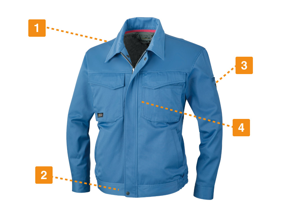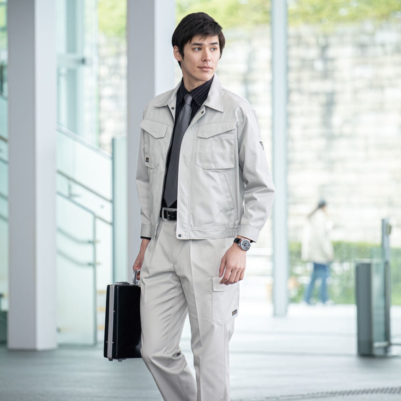 タフな生地と高い機能性にも注目のベーシックブルゾン。生地にはポリエステルと綿の混紡した丈夫な素材、T/Cツイルが使用されています。また、その抜群の動きやすさもポイント。背中がノーフォーク仕様になっており、前屈などの動作にも妨げを感じさせません。さらに、袖に採用された立体裁断、NEWバンザイカットで腕の上げ下げや曲げ伸ばしもとてもスムーズに行えます。生地にはさらに帯電防止素材が使用され、不快な静電気の発生をカット。あらゆる職場でのノンストレスな着用を実現するウェアです。