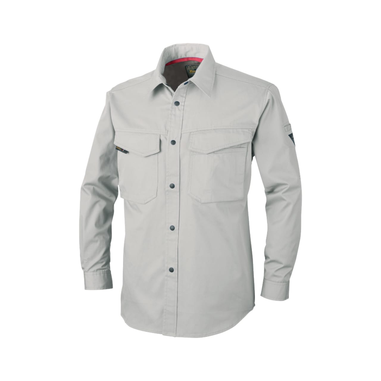 春夏シーズンの着用にぴったりの生地を使用した、ベーシックなワークシャツです。本体生地に使用されているT/Cサマーツイルは、さらっと着られる薄手生地で、まさに夏のための爽やかな素材。ポリエステルと綿を混紡し、ツイルならではの丈夫さも備え、ハードワークにも最適な一着になっています。さらに、生地は帯電防止素材を使用することで、静電気の発生をカット。ほこりの付着や生地のまとわりつきを防いで、ストレスのない着用を叶えるウェアです。