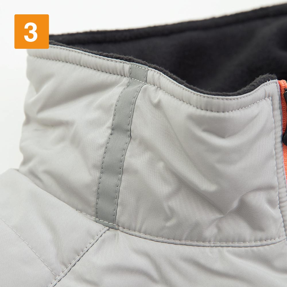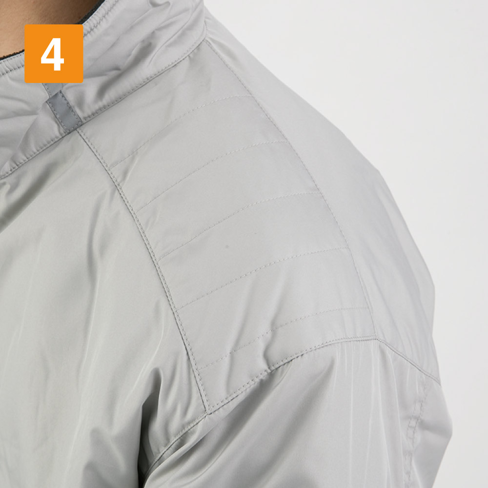 襟元には反射テープ、左袖には反射ネーム付き