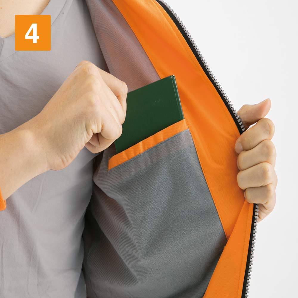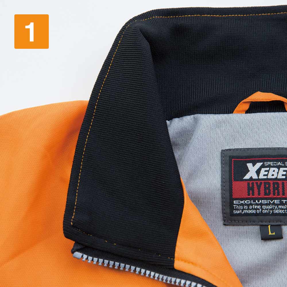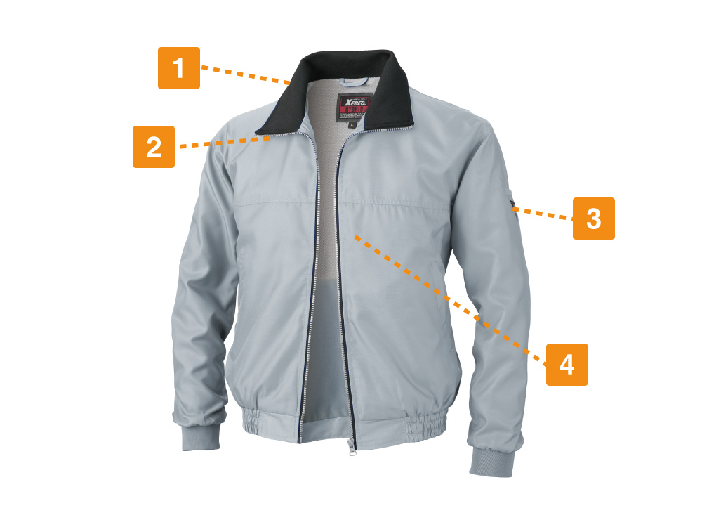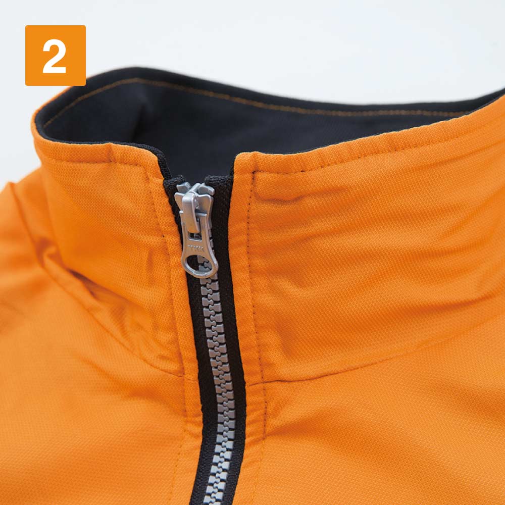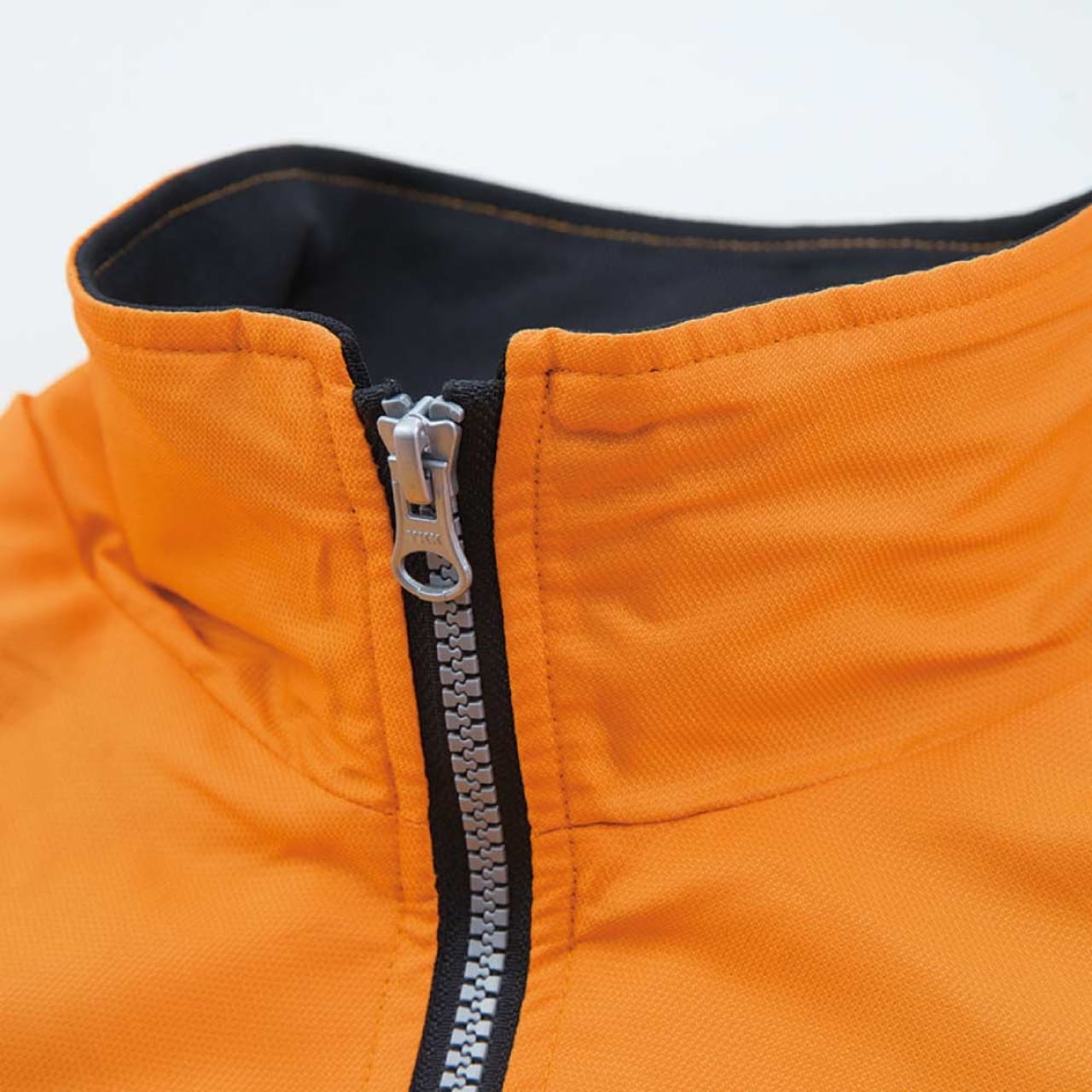 シーンを問わず快適に着用できる、使い勝手の良さが魅力のブルゾンです。生地に使用されているドビーは、軽量で通気性と保温性を両立したワークウェアには最適な生地。防寒対策用としての機能を持ちつつも、汗をかいても快適でいられるので、様々なお仕事にフィットする一着です。さらに、首が触れる襟はジャージ生地になっており、吸汗性能によって不快な首の蒸れを感じにくくしています。裏地にはディンプルメッシュ素材を使用し、通気性をよりアップ!裏地は起毛素材なので肌ざわりもやさしく、ぬくもりを感じられるのも嬉しいポイントです。