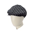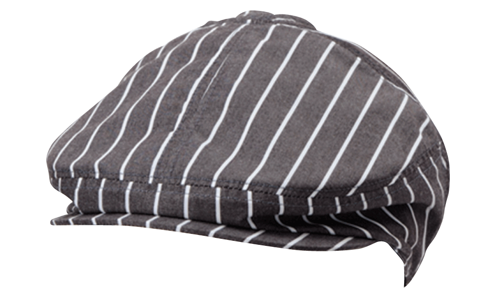 ほどよく柔らかさのある生地と、かっちりとしたつばのバランス感が絶妙なデザイン。かっちりしすぎてしまう印象のあるハンチングも、ストライプとチェックの柄でほどよくカジュアルダウンしています。高級店からカジュアルなお店まで、幅広い店舗スタイルにフィットし、ホールはもちろん、厨房でもおしゃれにかぶっていただけるルックスです。また、シャツなどベーシックウェアとの相性も良く、親しみやすさと清潔感どちらも感じられるアイテムに仕上がっています。