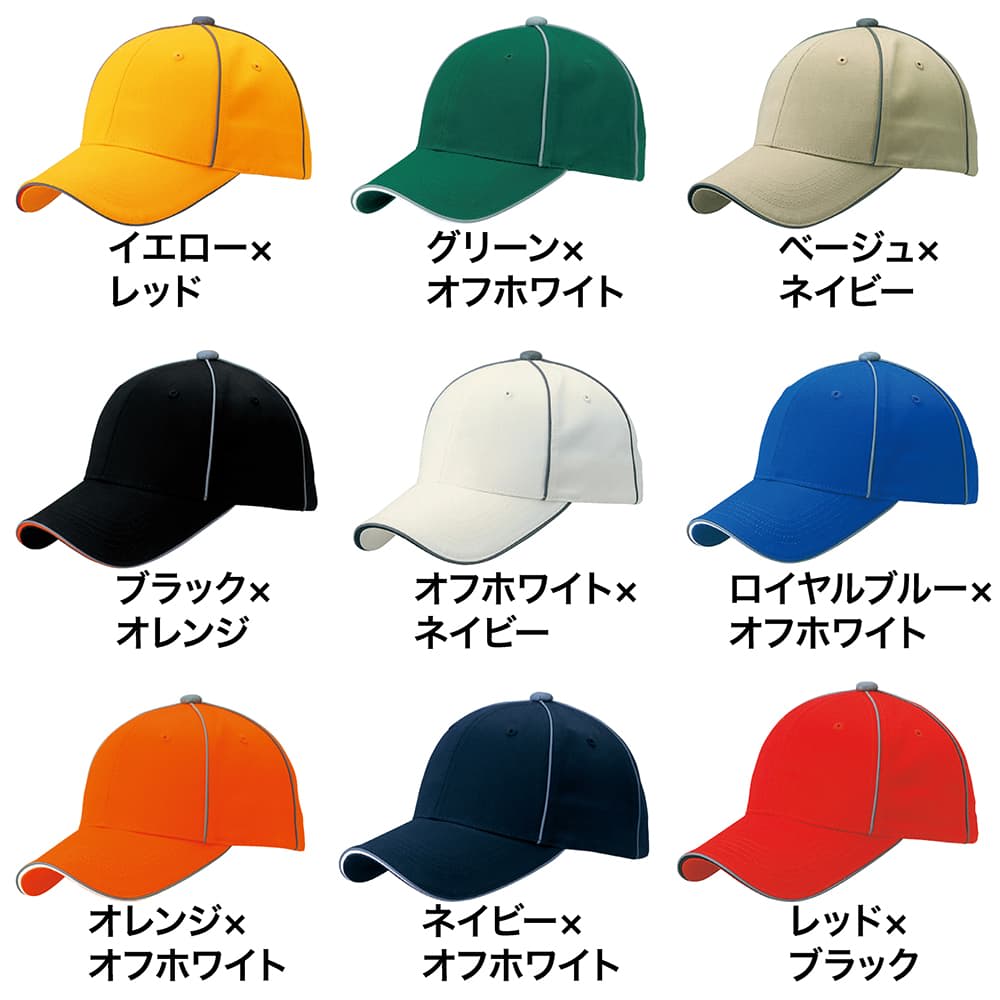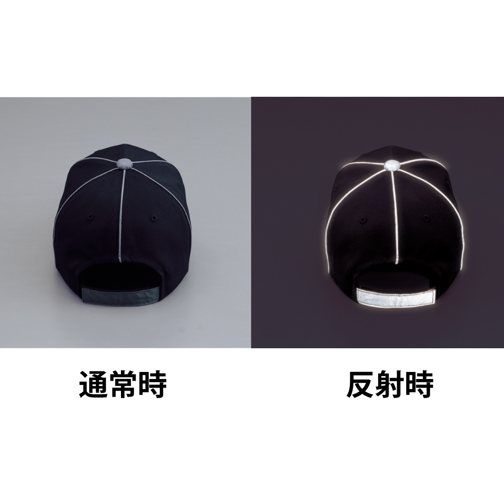 高級感あるコットン100%素材のキャップに反射素材を組み合わせました。夜間に光を当てると反射材が光を反射し、相手に存在を認識してもらう可能性が高まります。