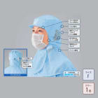 顔以外の頭部をしっかりカバーし、肩まで広がるケープと合わせて落髪リスクを最小限に抑えた衛生帽です。生地にもこだわり、快適で清潔な作業をアシストしてくれます。サイズはフリーサイズとワンサイズながら、帽子後部に設けられたマジックベルトでサイズ調整ができる仕様に。頭囲56~61cmまで幅広く対応しています。カラーはクリーンな印象のサックスと、同じ仕様で品番の異なる白の2色が用意されており、作業姿を清潔な印象にしてくれるのもポイントです。