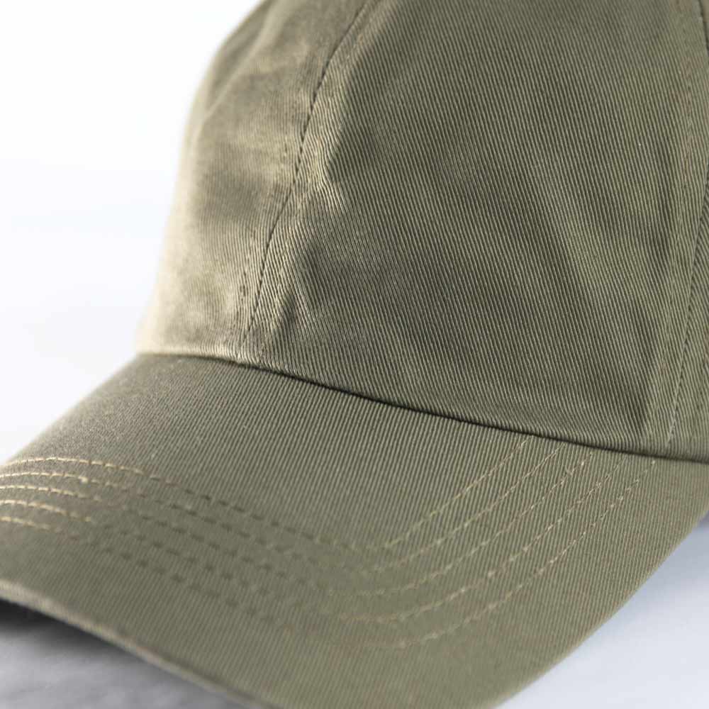 落ち着いた色調で、ざっくりとした雰囲気が楽しめるキャップです。使用を重ねる度に深みが増すキャップ。こちらのキャップにはフロントへ小さめの刺繍がおすすめです。